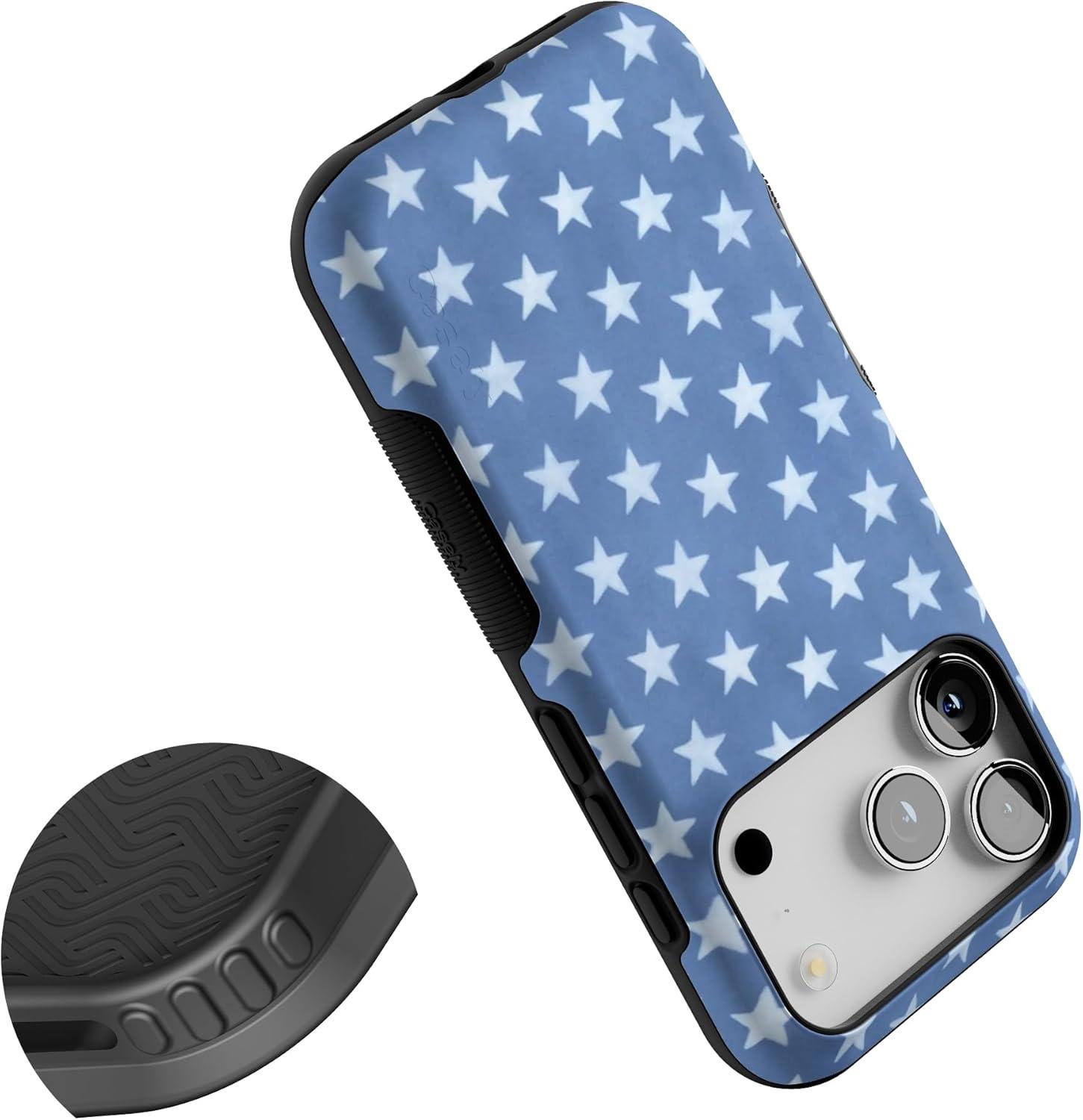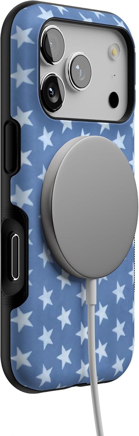 Casely iPhone 17 Pro Case | Be Mine | Tiny Hearts | Bold Protective Design | Compatible with MagSafe(Coastal Blues | Denim Stars)