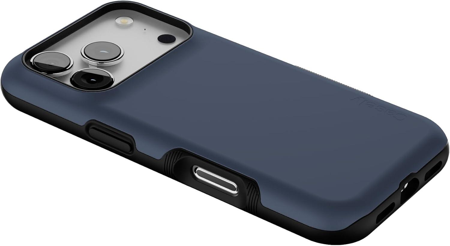 Casely iPhone 17 Pro Case | Be Mine | Tiny Hearts | Bold Protective Design | Compatible with MagSafe(The Boyfriend Collection | Slate Blue)