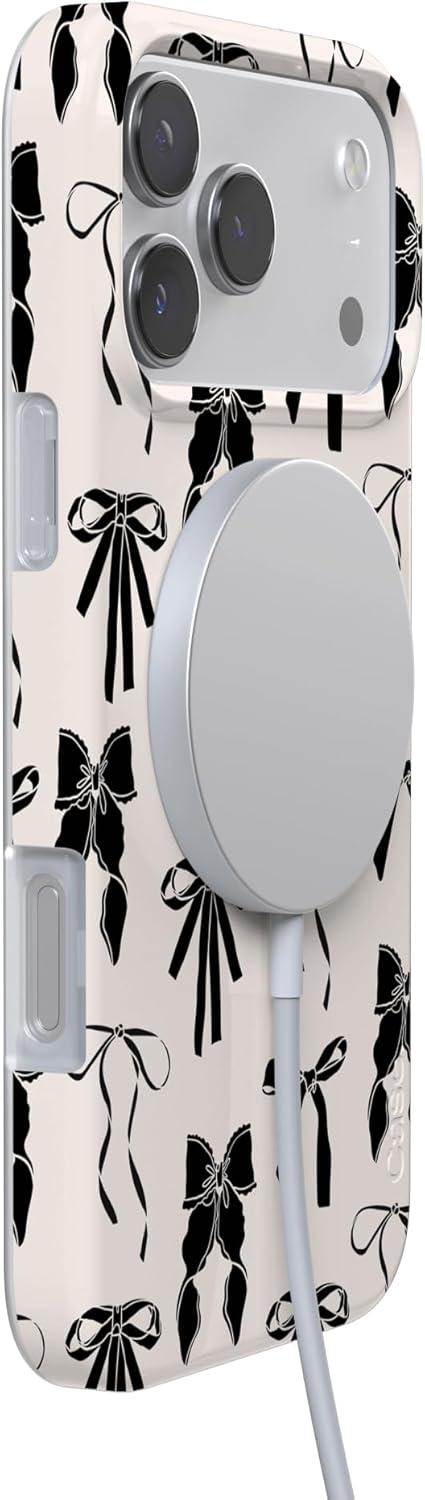 Casely iPhone 17 Pro Case | Chalet All Day | Winter Village | Compatible with MagSafe | Classic Ultra Thin Design(Goth Girlie | Black Bows)