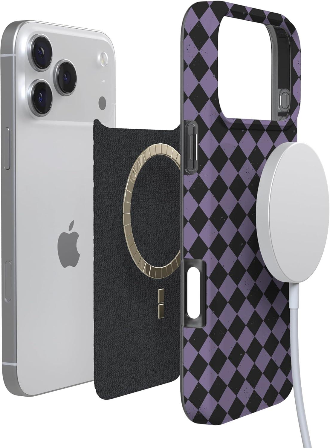 Casely iPhone 17 Pro Case | Chalet All Day | Winter Village | Compatible with MagSafe | Classic Ultra Thin Design(Harlequin Midnight Diamond | Black and Purple)