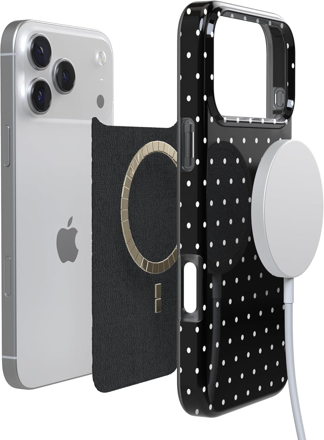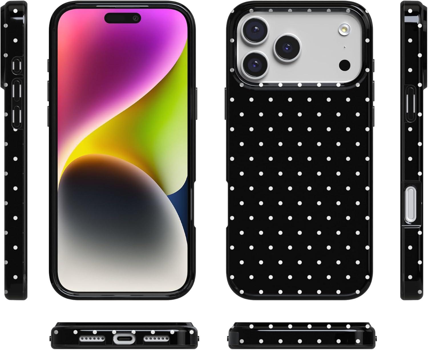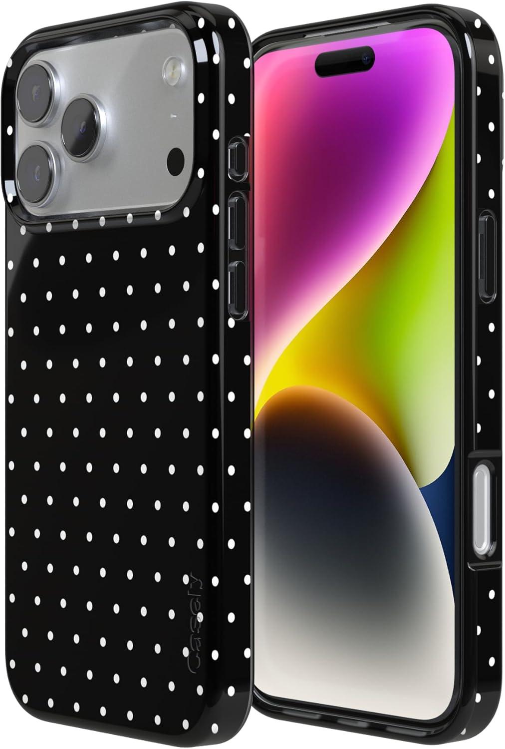 Casely iPhone 17 Pro Case | Chalet All Day | Winter Village | Compatible with MagSafe | Classic Ultra Thin Design(On the Dot | Black Polka Dot)