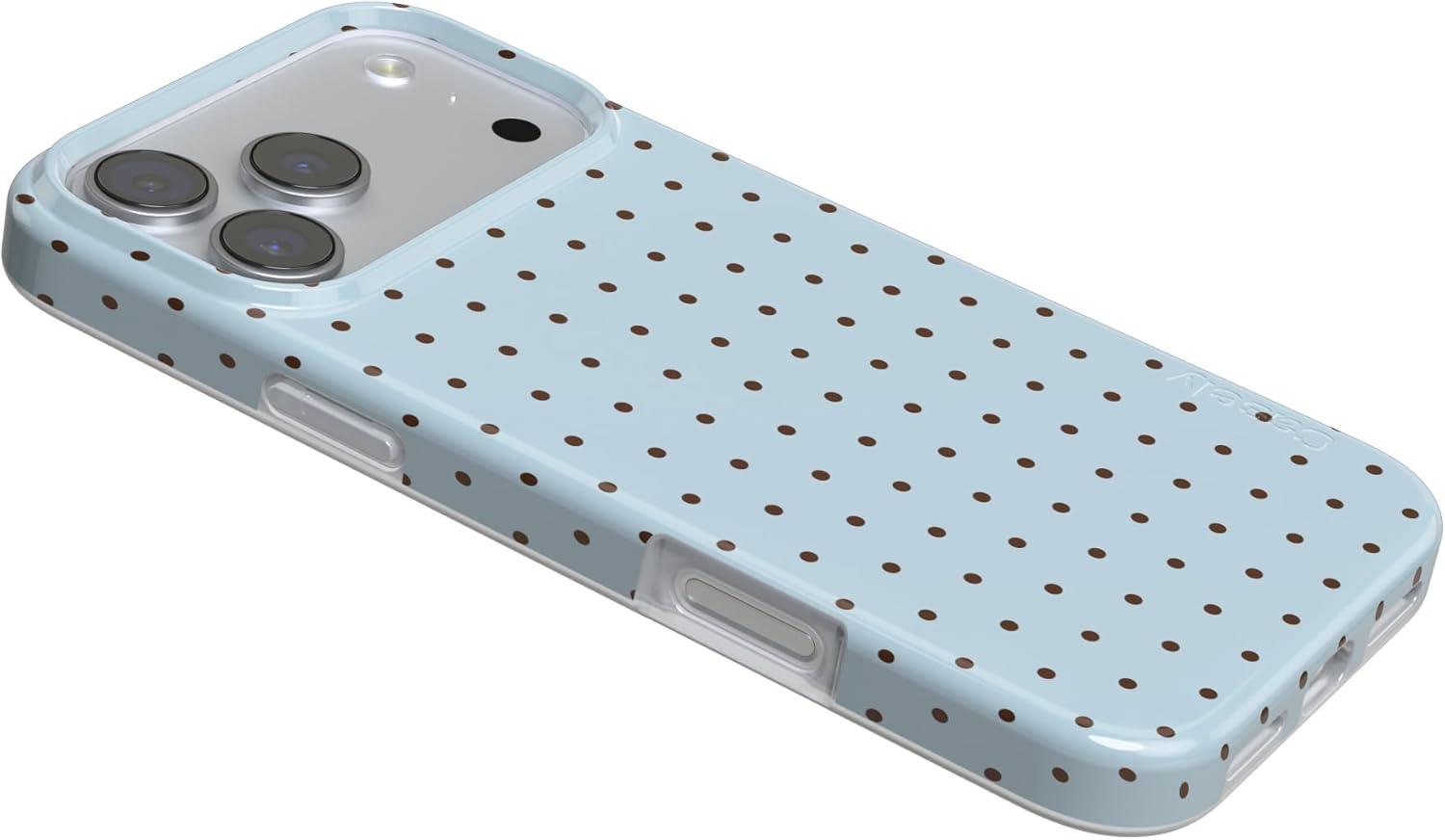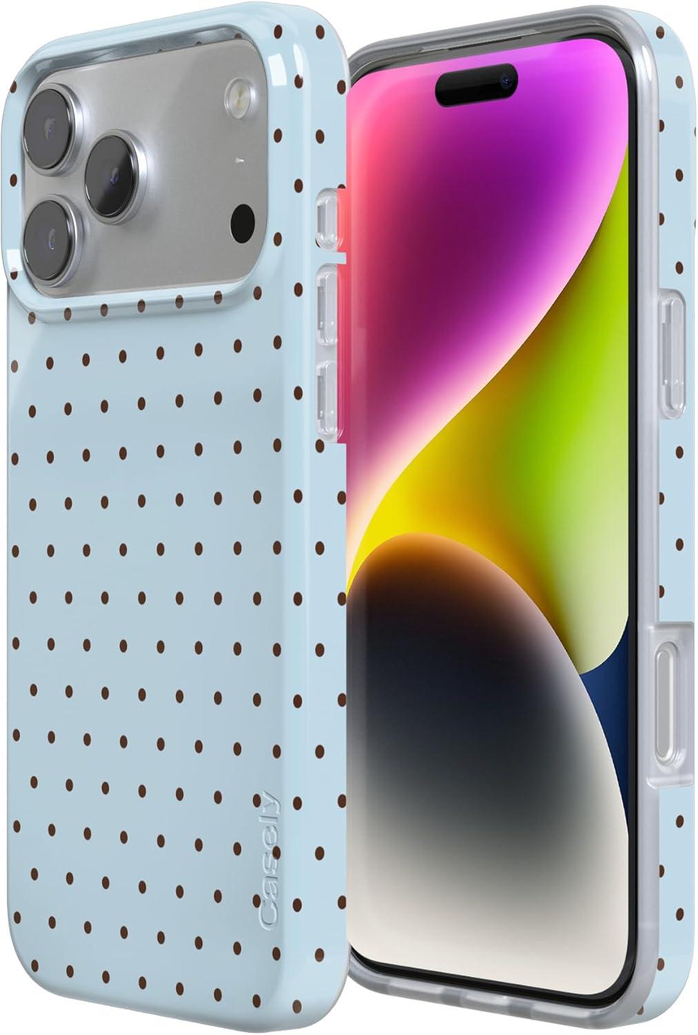 Casely iPhone 17 Pro Case | Chalet All Day | Winter Village | Compatible with MagSafe | Classic Ultra Thin Design(On the Dot | Blue Polka Dot)