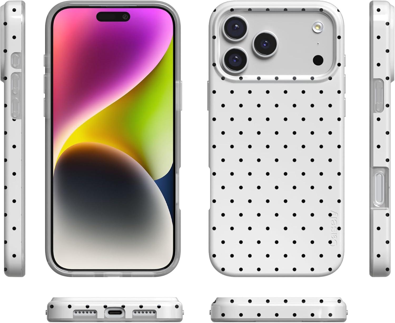 Casely iPhone 17 Pro Case | Chalet All Day | Winter Village | Compatible with MagSafe | Classic Ultra Thin Design(On the Dot | White Polka Dot)