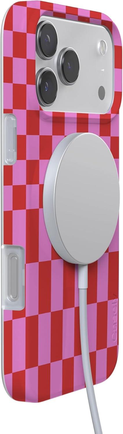 Casely iPhone 17 Pro Case | Chalet All Day | Winter Village | Compatible with MagSafe | Classic Ultra Thin Design(Vibe Check | Pink Checkerboard)