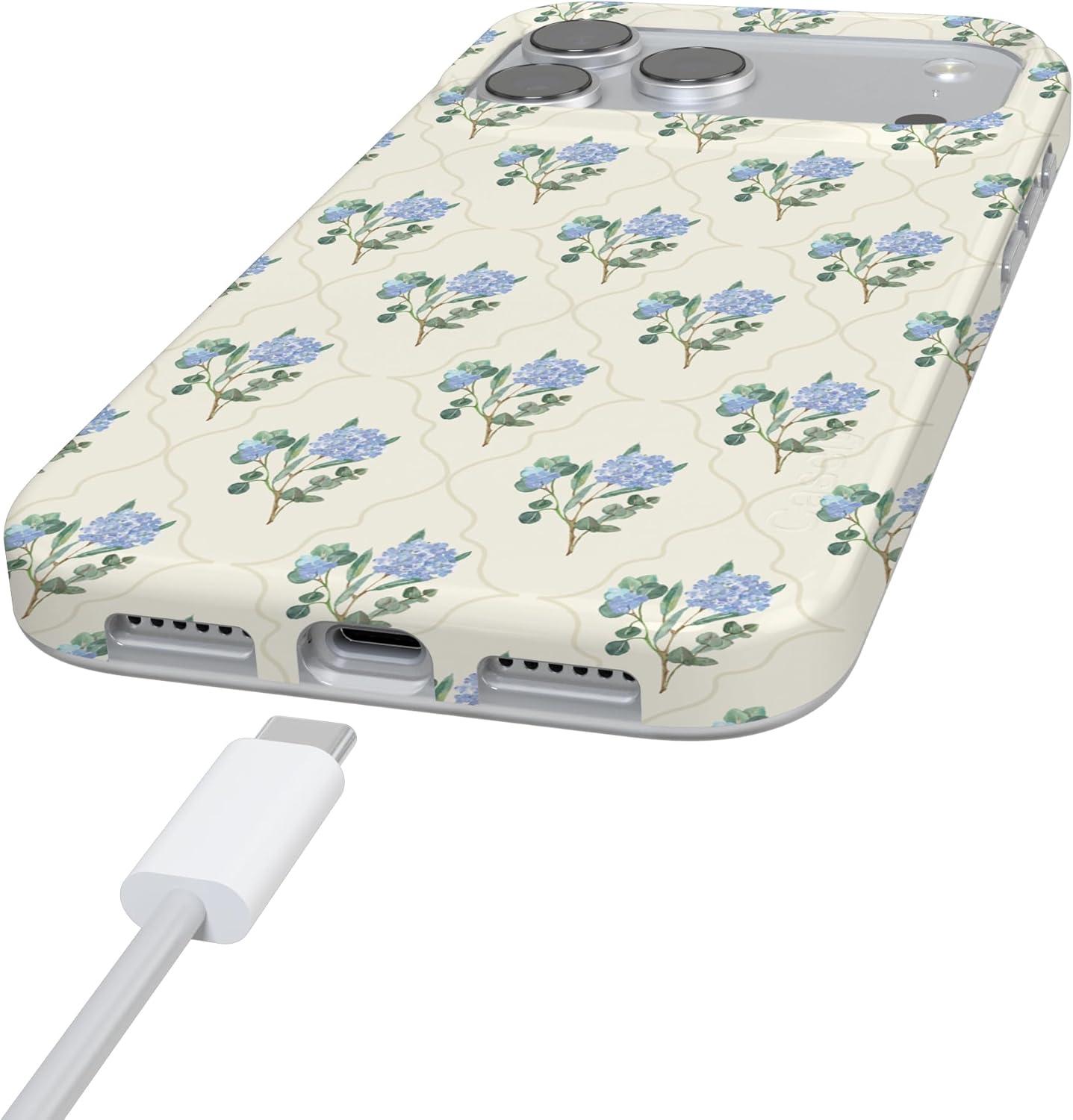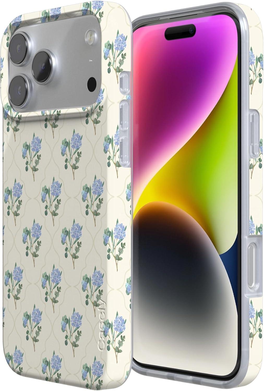 Casely iPhone 17 Pro Case | Chalet All Day | Winter Village | Compatible with MagSafe | Classic Ultra Thin Design(Vintage Garden | Blue Hydrangea)