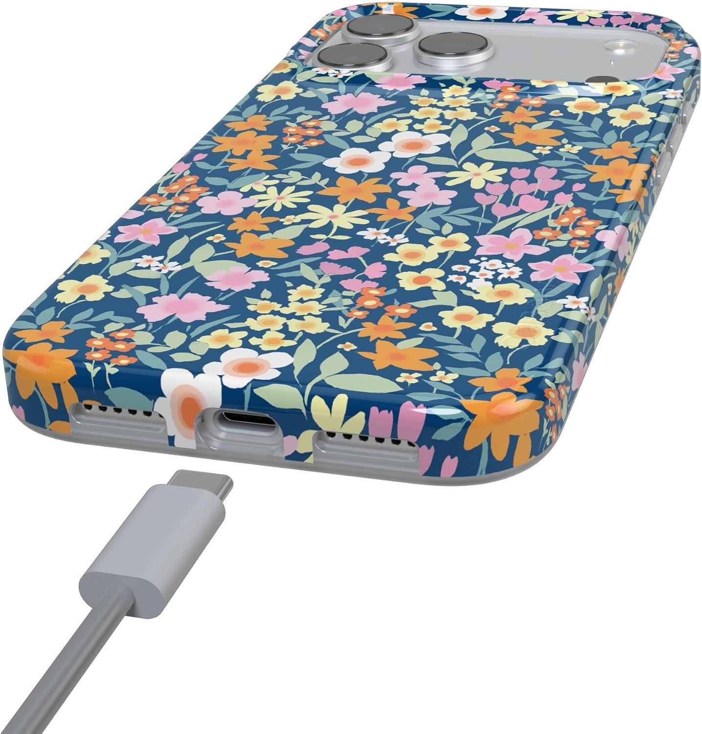 Casely iPhone 17 Pro Case | Chelsea Checker | Starlight Tiles | Compatible with MagSafe | Classic Ultra Slim Design(Full Bloom | Navy Floral)