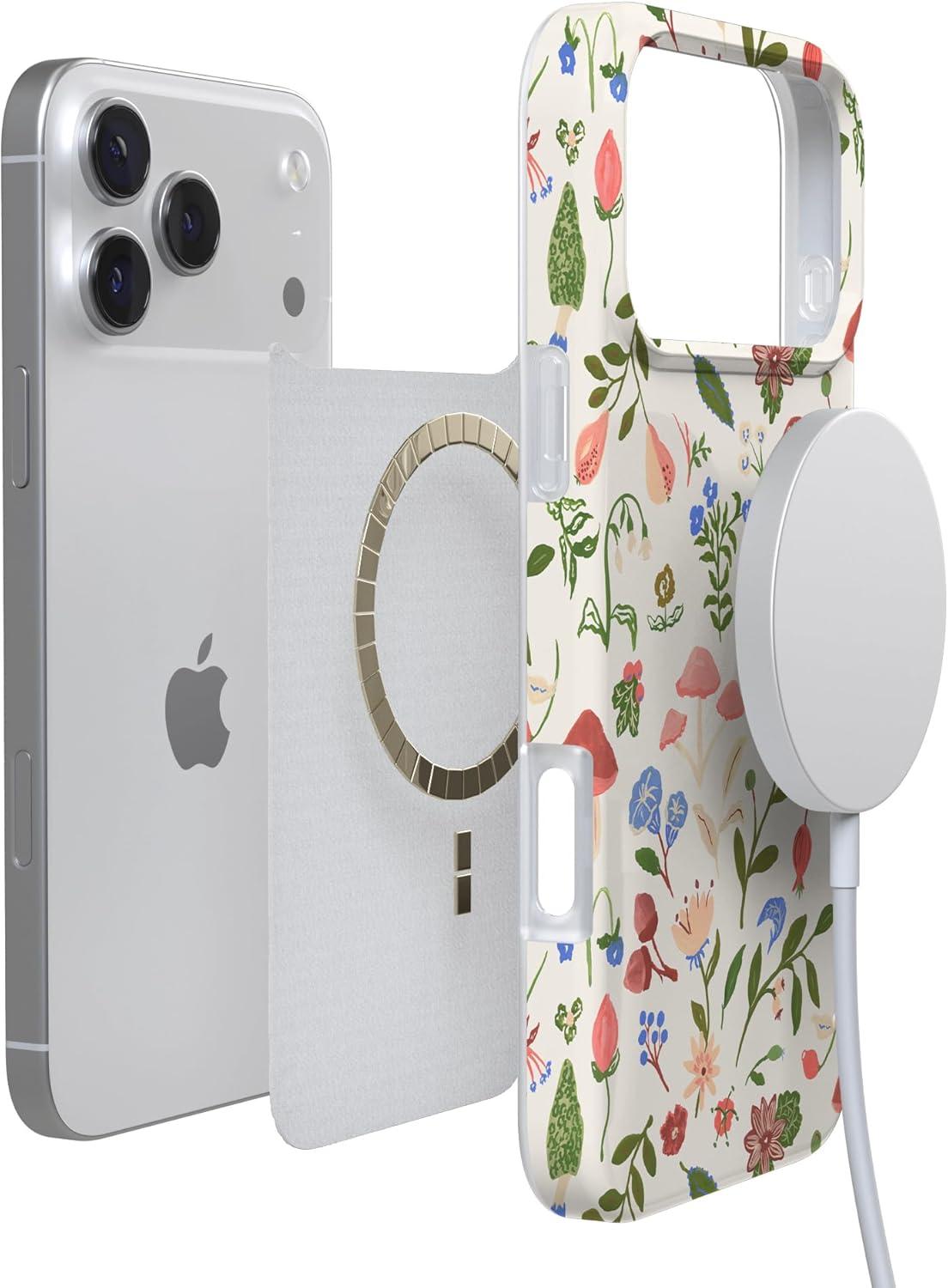 Casely iPhone 17 Pro Case | Chelsea Checker | Starlight Tiles | Compatible with MagSafe | Classic Ultra Slim Design(Garden Party | Mushroom Floral)