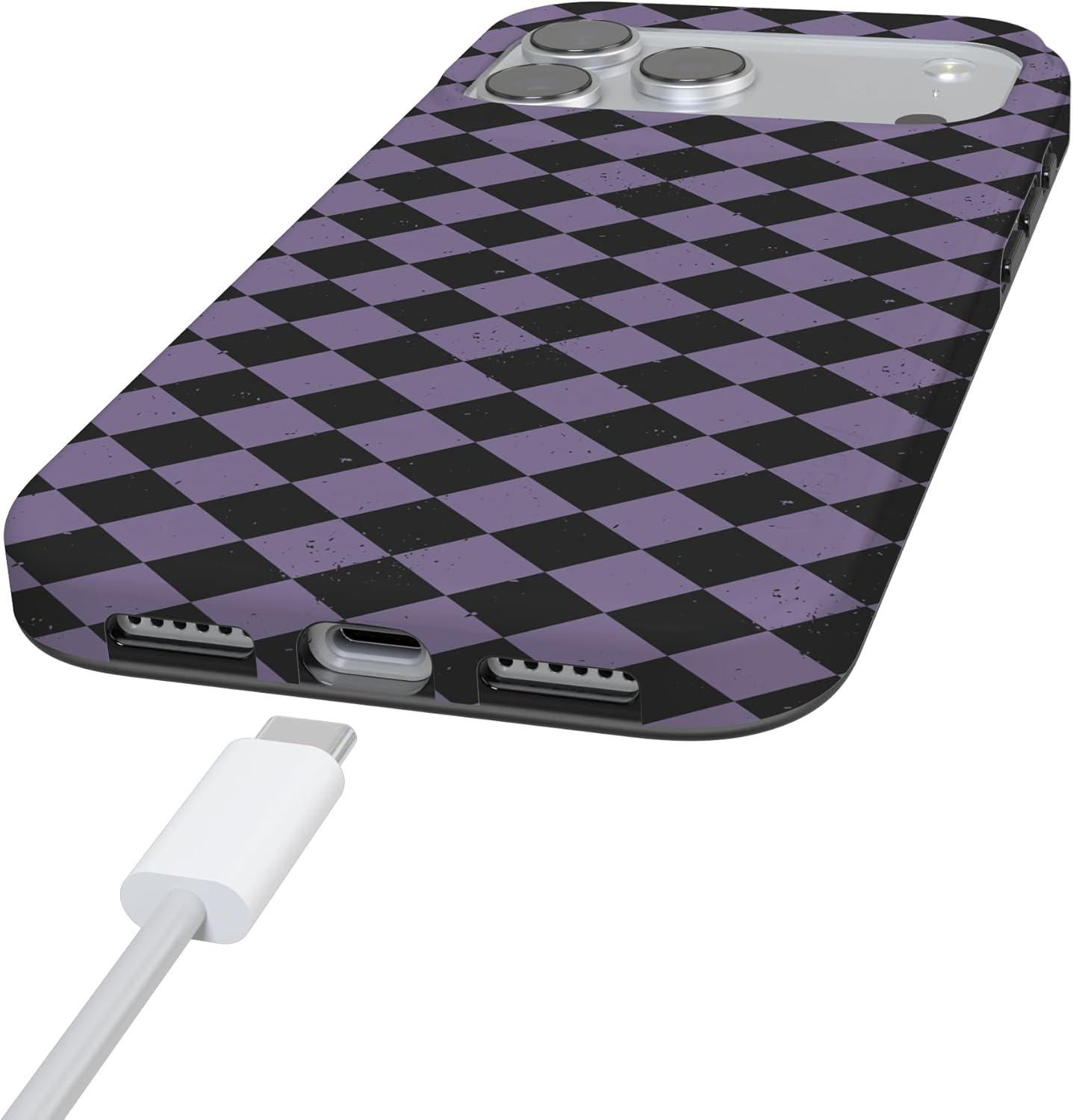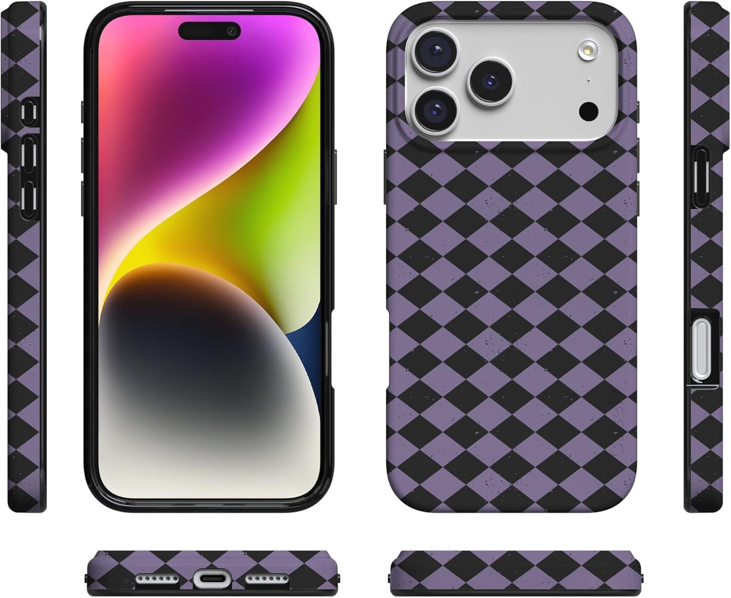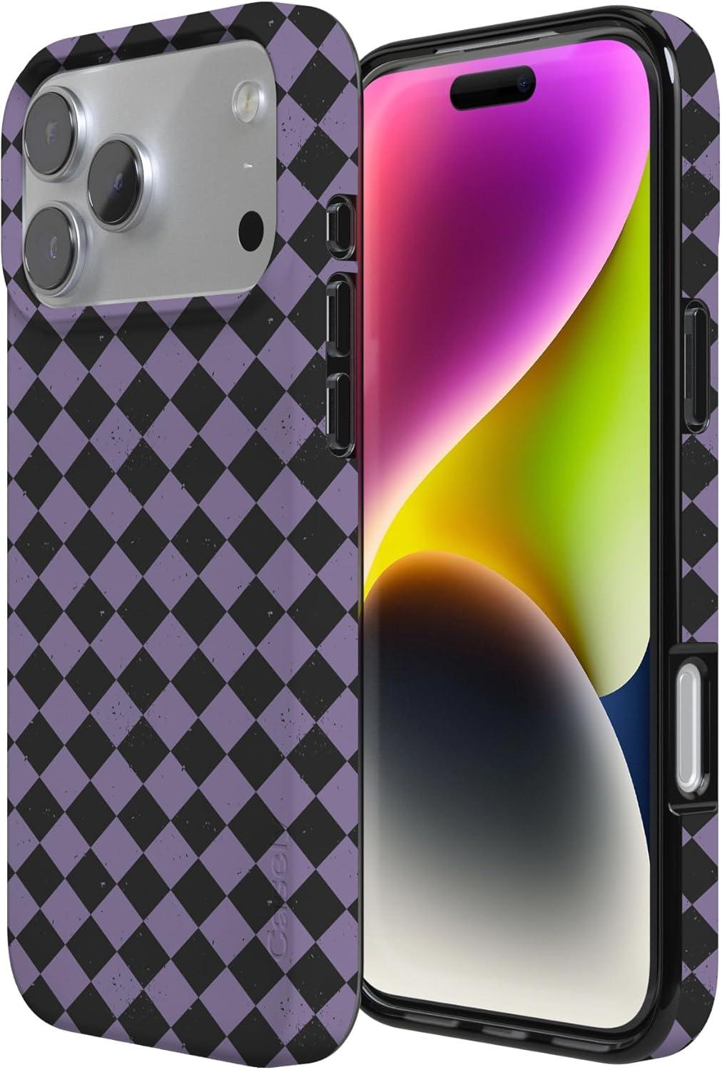 Casely iPhone 17 Pro Case | Chelsea Checker | Starlight Tiles | Compatible with MagSafe | Classic Ultra Slim Design(Harlequin Midnight Diamond | Black and Purple)