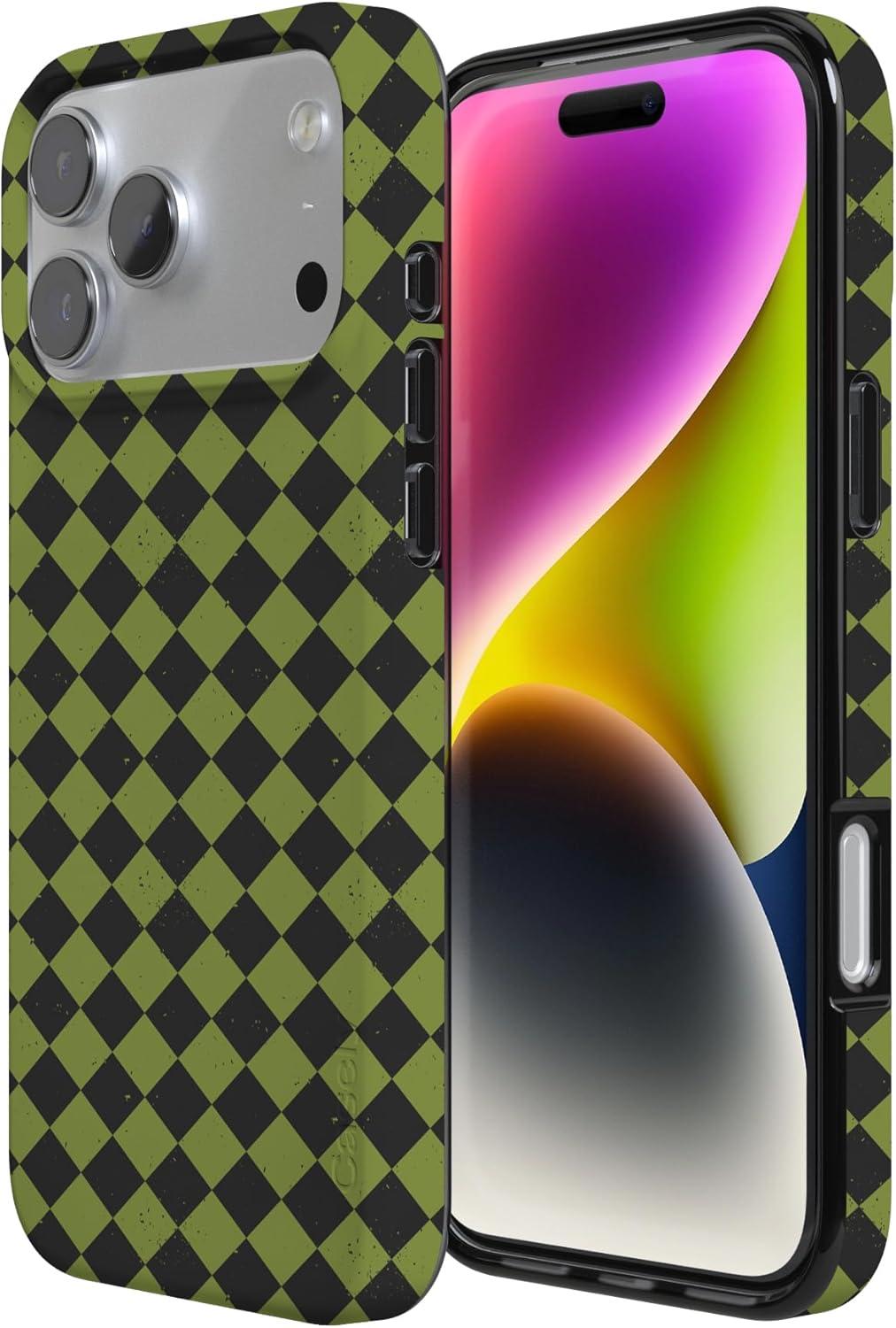 Casely iPhone 17 Pro Case | Chelsea Checker | Starlight Tiles | Compatible with MagSafe | Classic Ultra Slim Design(Harlequin Wicked Diamond | Black and Green)