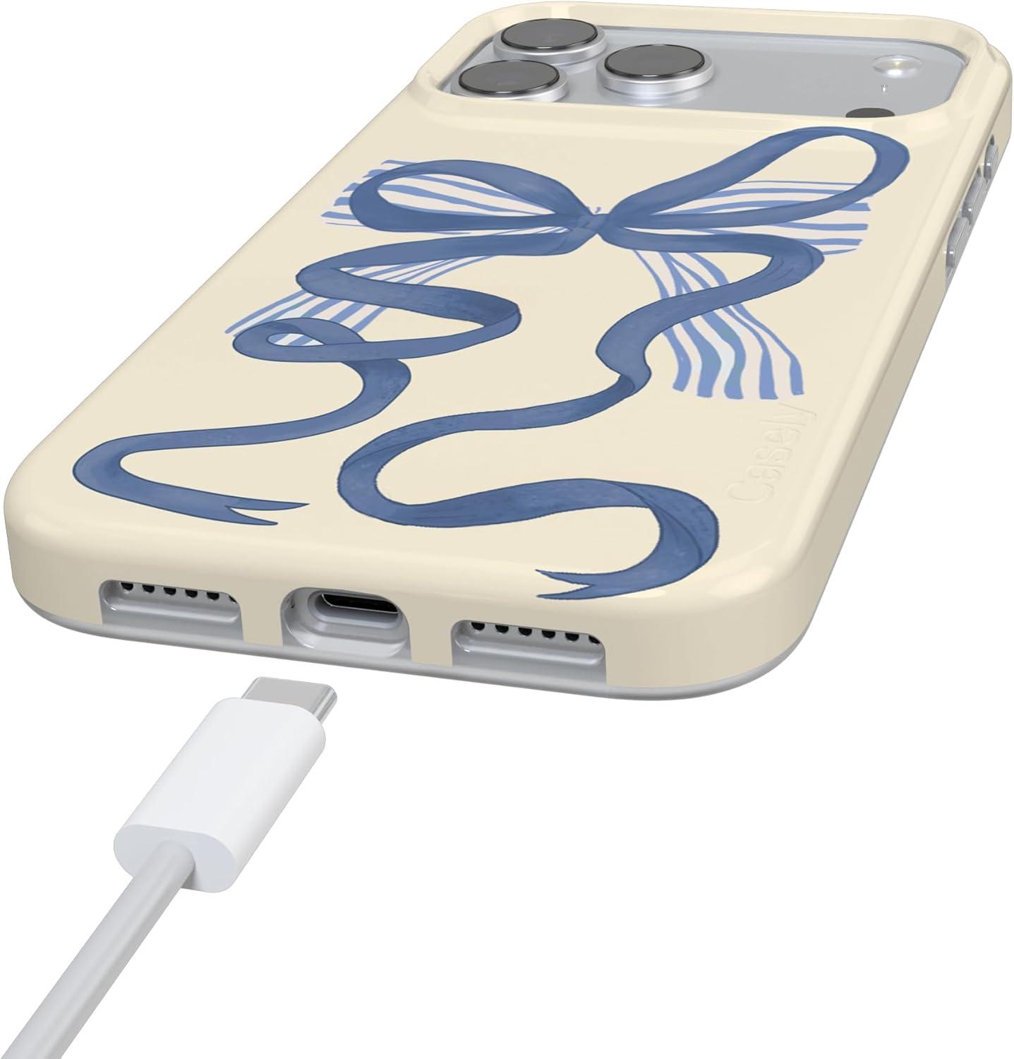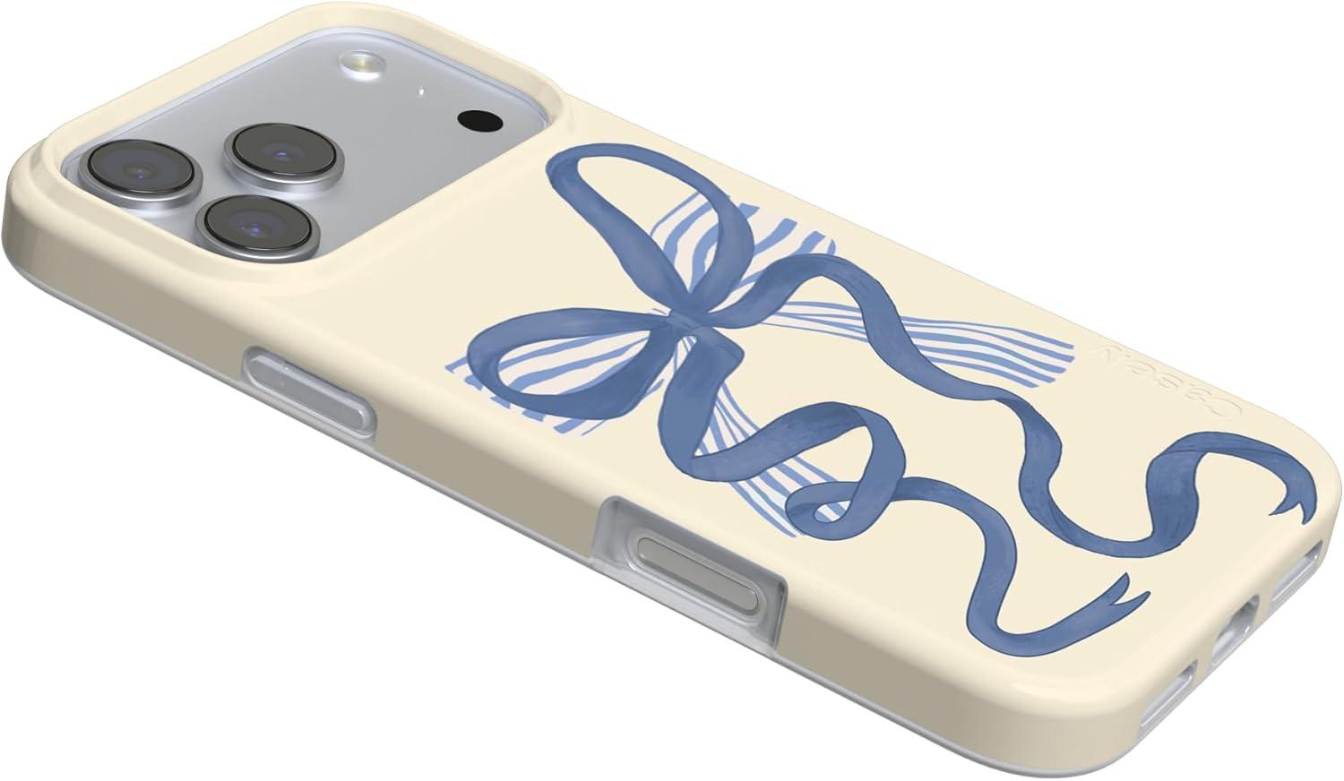 Casely iPhone 17 Pro Case | Chelsea Checker | Starlight Tiles | Compatible with MagSafe | Classic Ultra Slim Design(Heartstrings | Blue Bow)