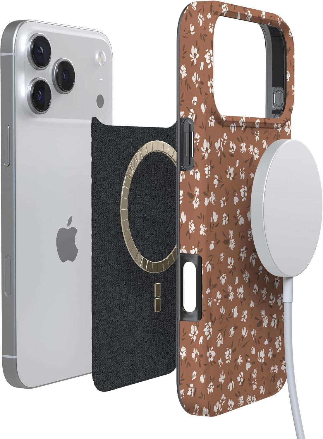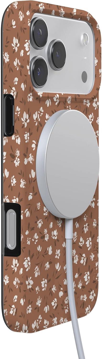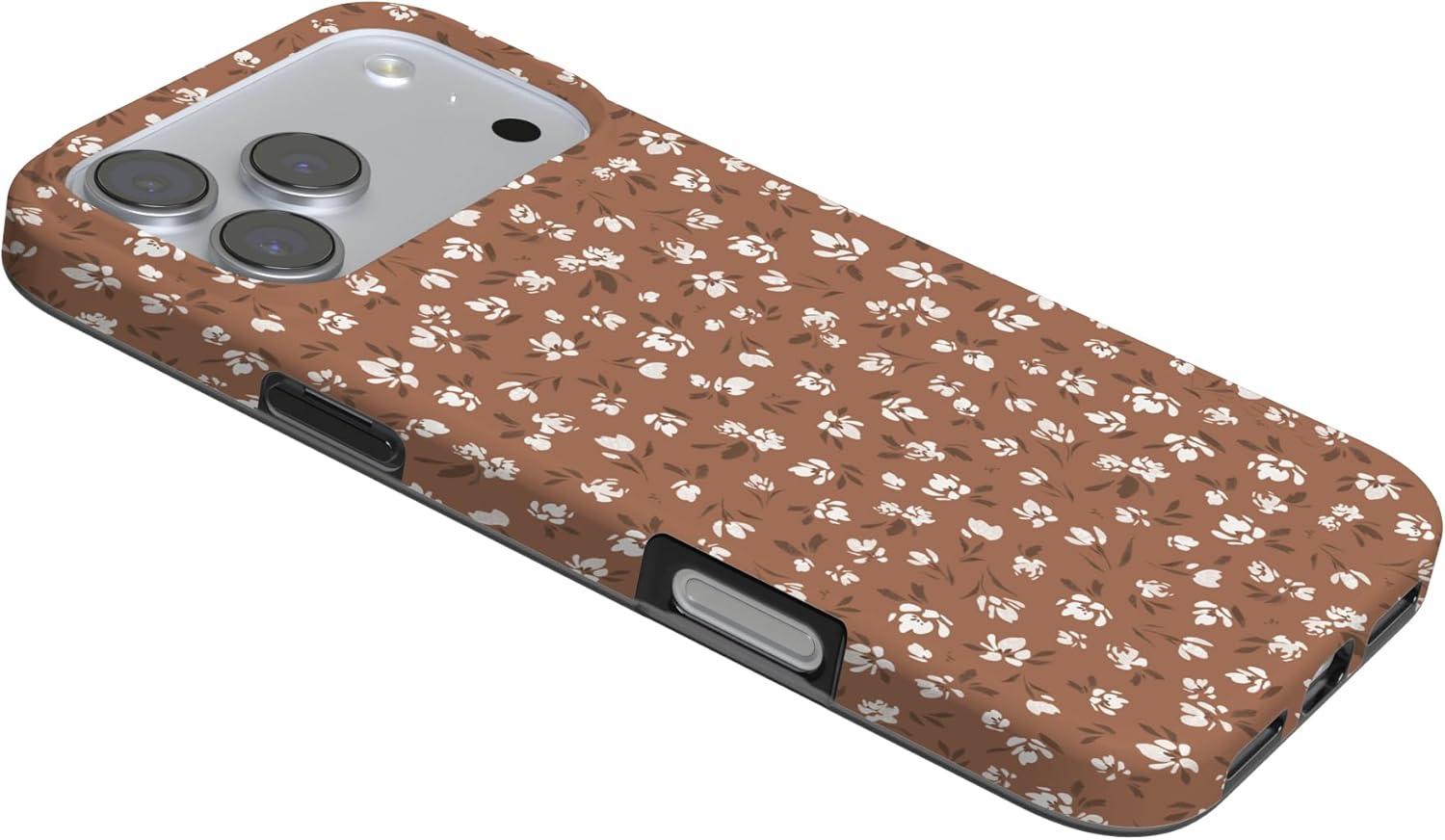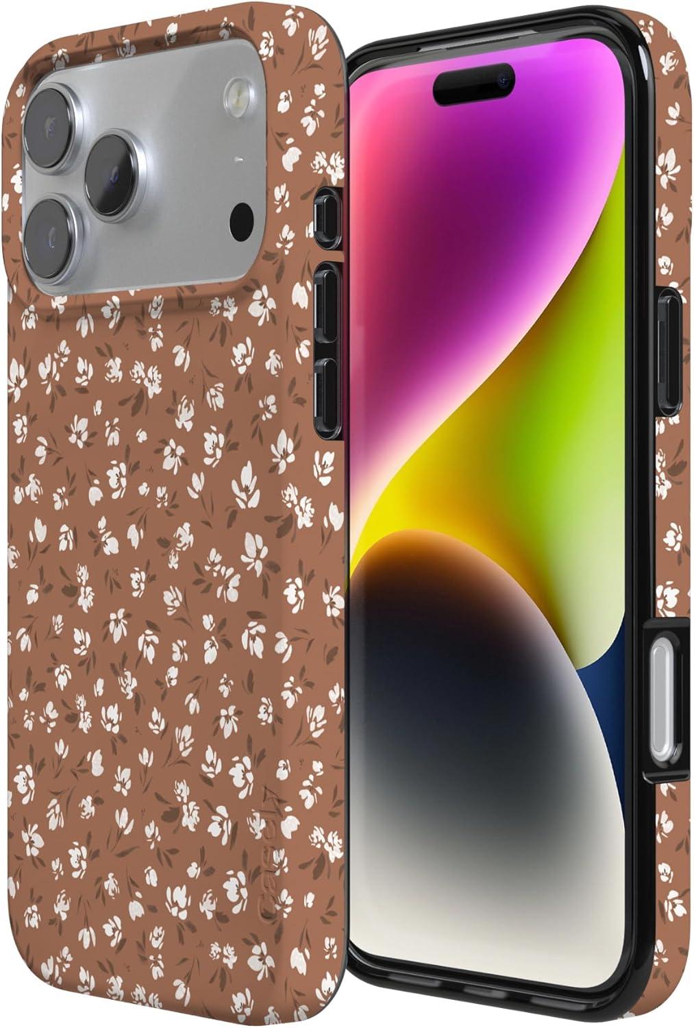 Casely iPhone 17 Pro Case | Chelsea Checker | Starlight Tiles | Compatible with MagSafe | Classic Ultra Slim Design(Mocha Meadow | Tiny Flowers)