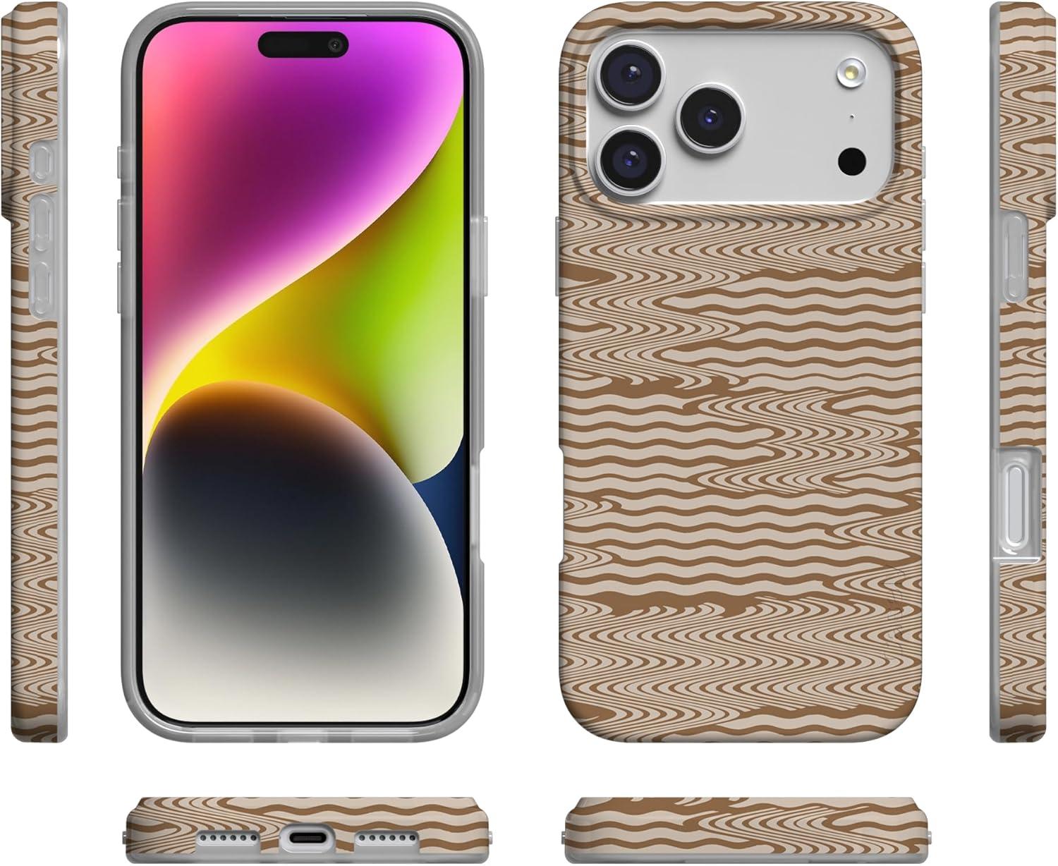 Casely iPhone 17 Pro Case | Chelsea Checker | Starlight Tiles | Compatible with MagSafe | Classic Ultra Slim Design(Mocha Ripple | Brown Waves)