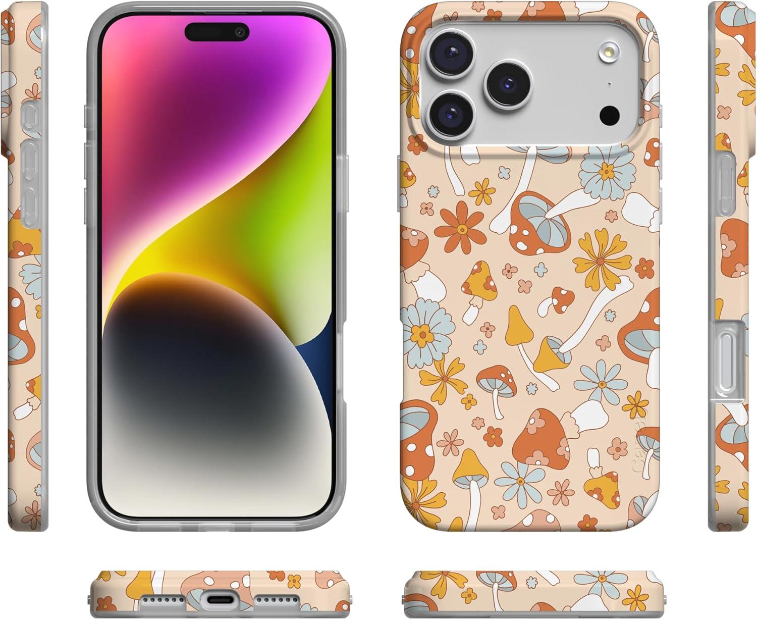 Casely iPhone 17 Pro Case | Chelsea Checker | Starlight Tiles | Compatible with MagSafe | Classic Ultra Slim Design(Mushroom Magic | Retro Floral)