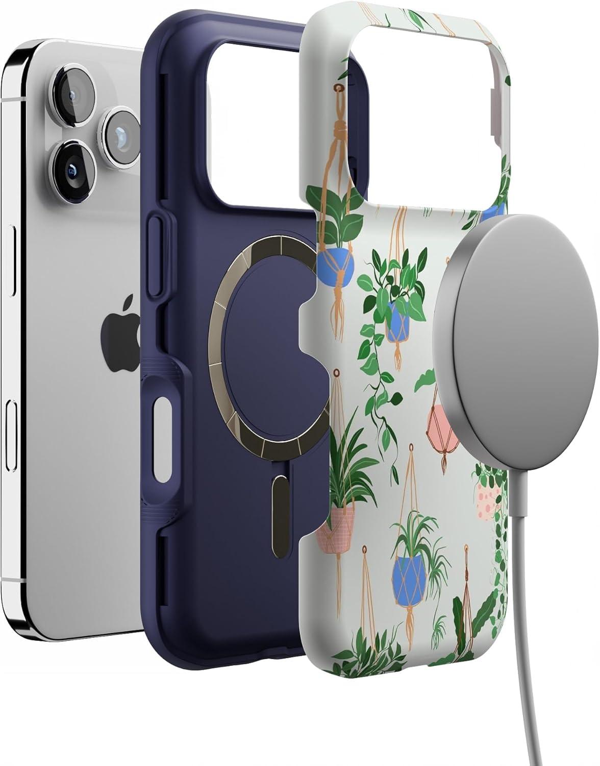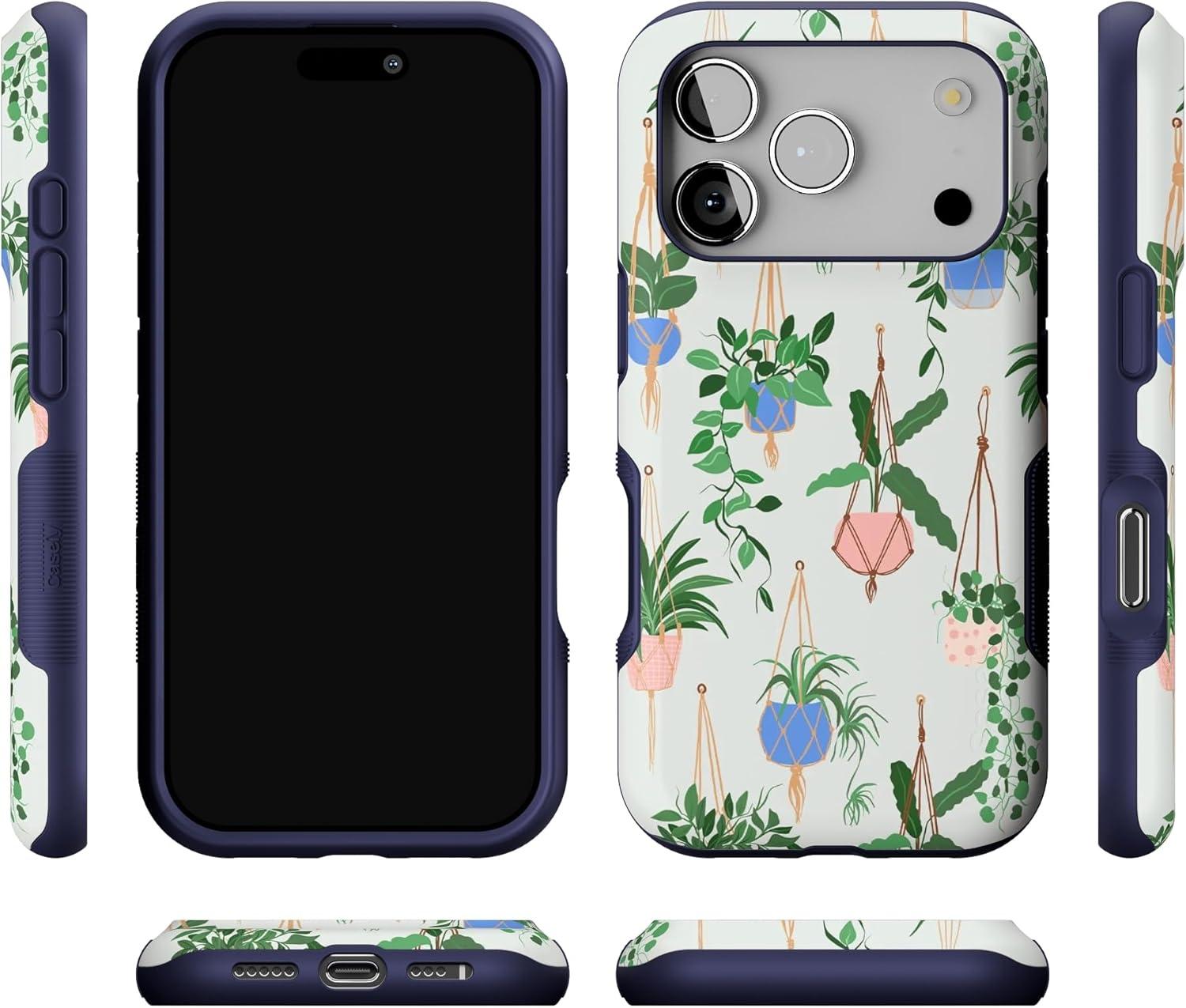 Casely iPhone 17 Pro Case | Navy Cherry Blossom | Floral Forest | Bold Protective Design | MagSafe Compatible Design(Hanging Around | Potted Plants Floral)
