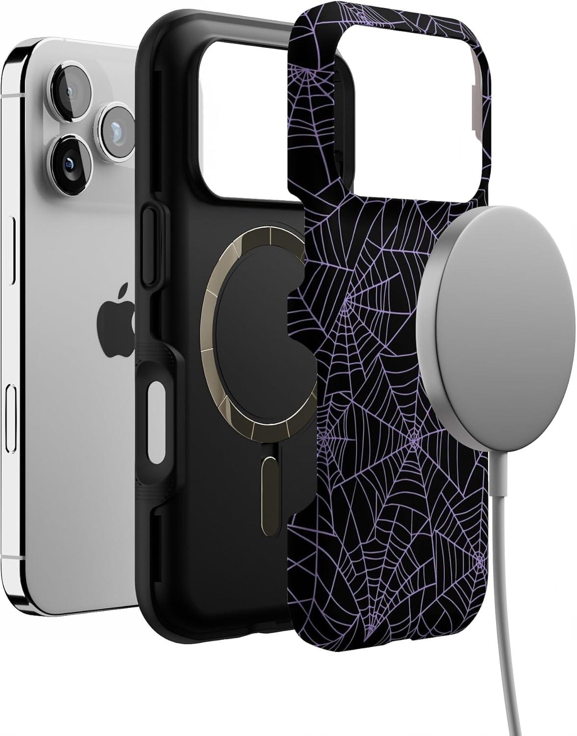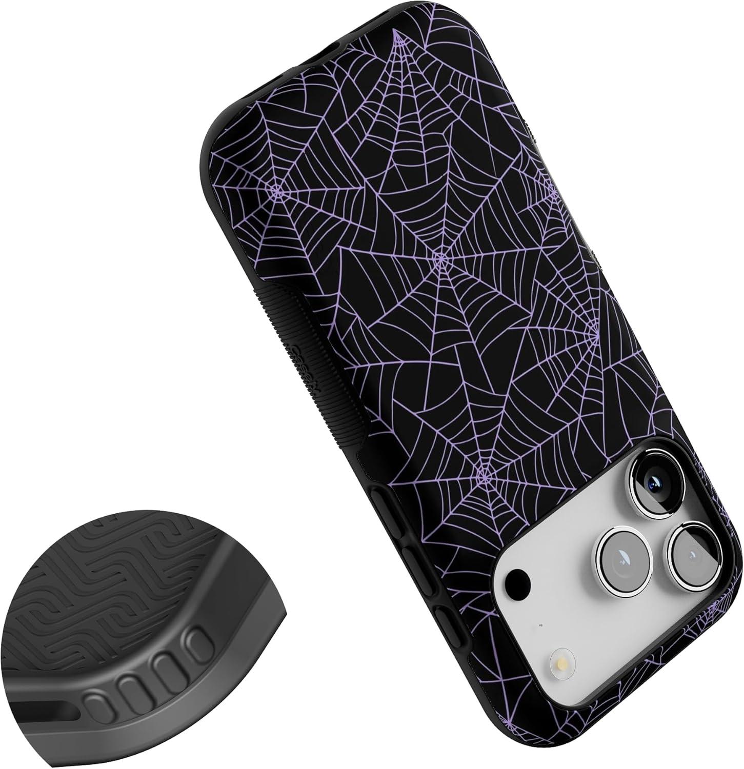 Casely iPhone 17 Pro Case | Navy Cherry Blossom | Floral Forest | Bold Protective Design | MagSafe Compatible Design(Midnight Web | Spider Web)