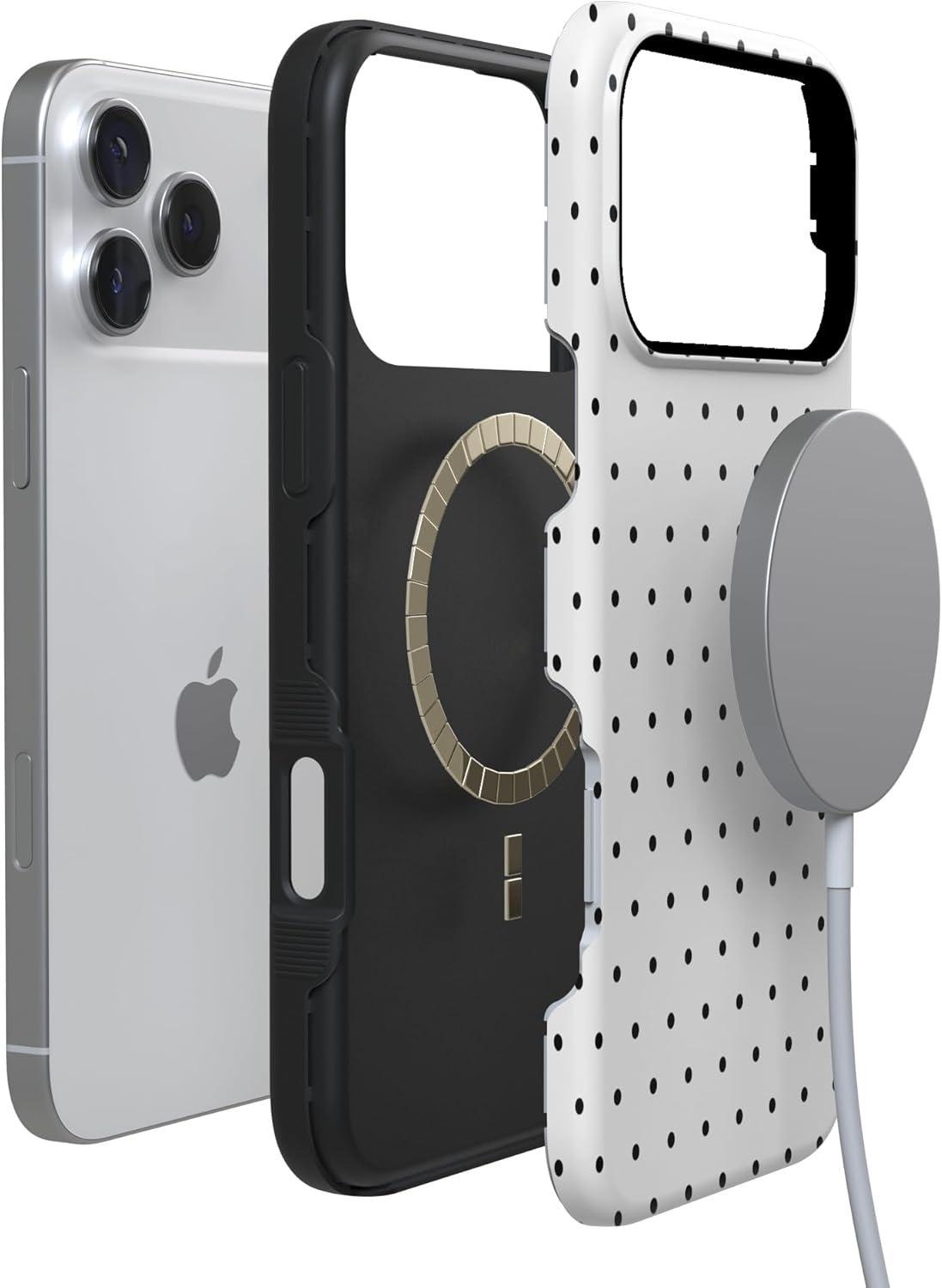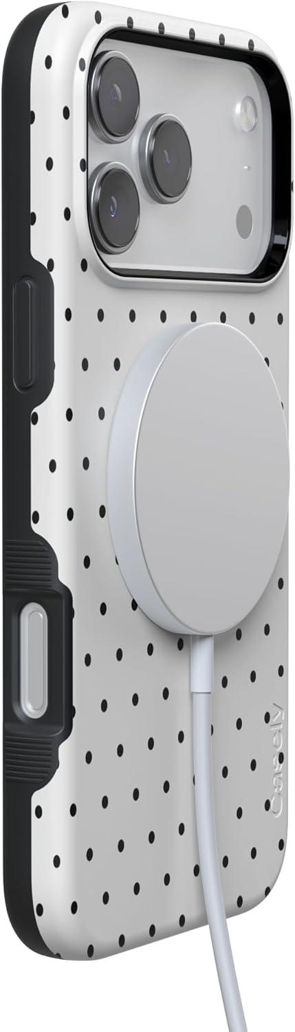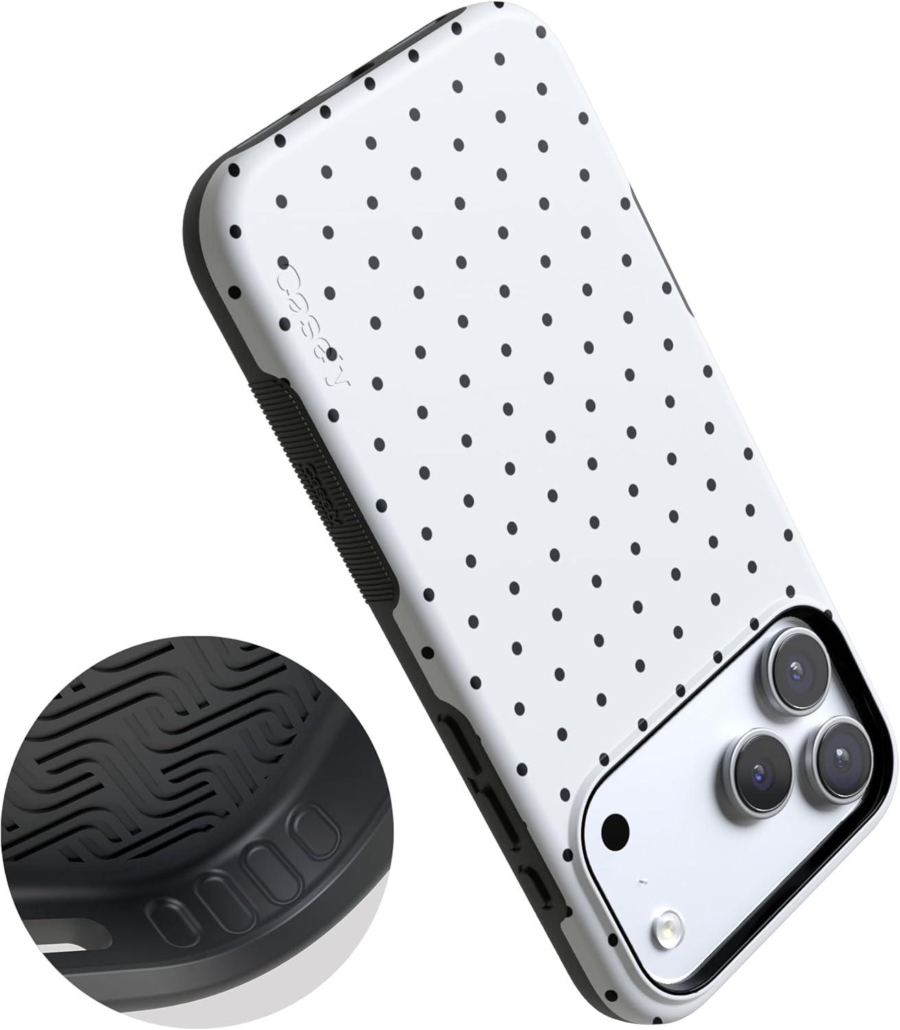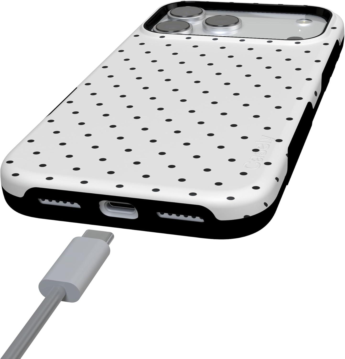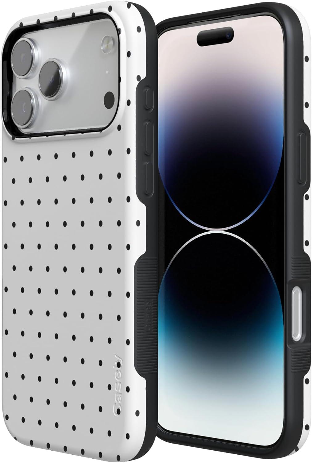 Casely iPhone 17 Pro Case | Navy Cherry Blossom | Floral Forest | Bold Protective Design | MagSafe Compatible Design(On the Dot | White Polka Dot)