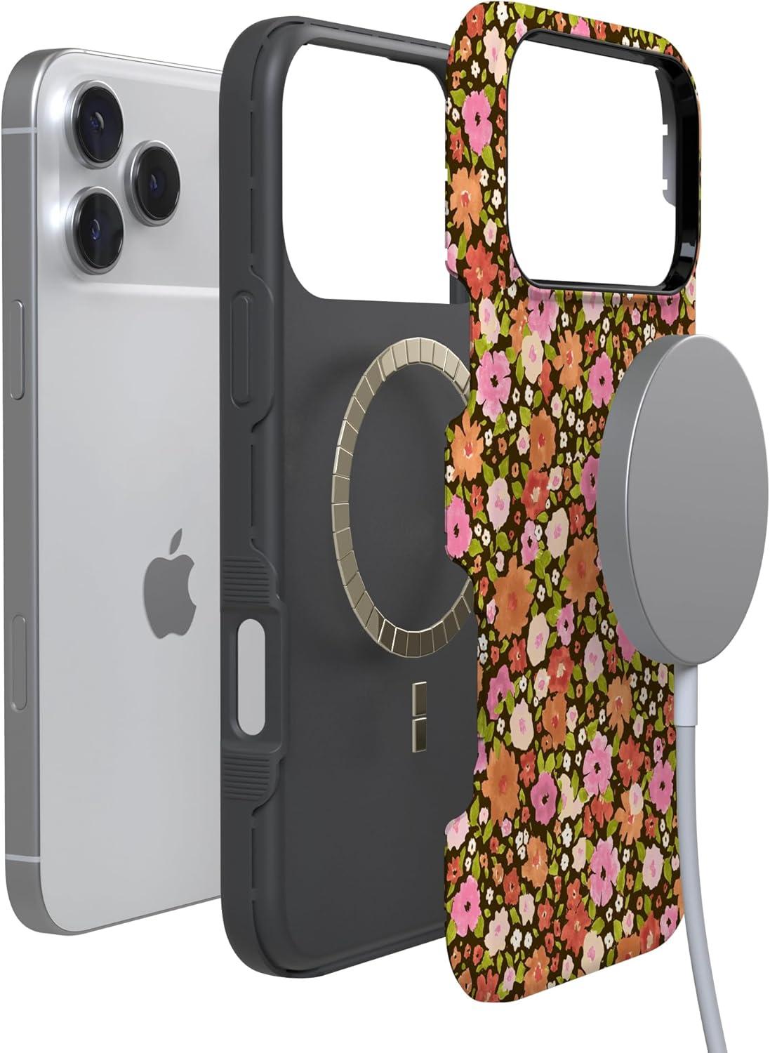 Casely iPhone 17 Pro Case | Navy Cherry Blossom | Floral Forest | Bold Protective Design | MagSafe Compatible Design(Rustic Roses | Boho Bouquet)