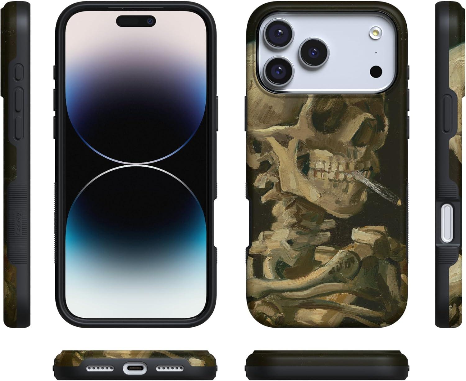 Casely iPhone 17 Pro Case | Navy Cherry Blossom | Floral Forest | Bold Protective Design | MagSafe Compatible Design(Van Gogh | Skull of a Skeleton with Burning Cig)