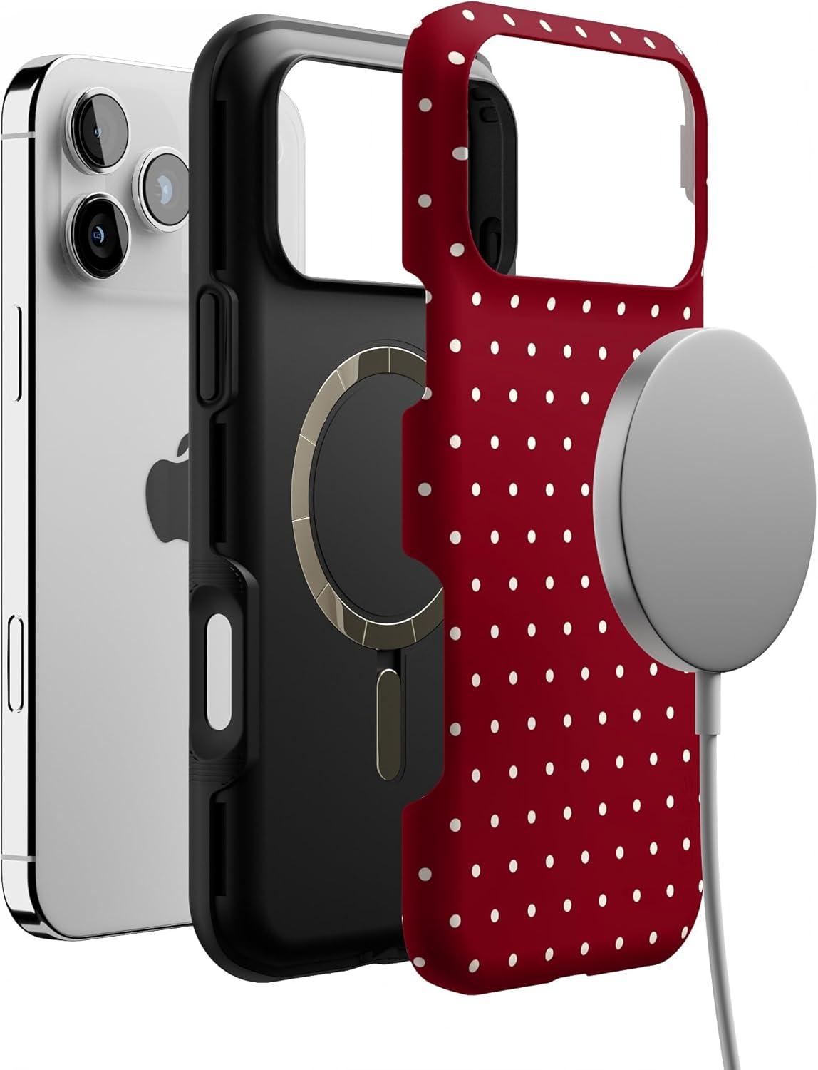 Casely iPhone 17 Pro Case | On The Dot | Maroon Polka Dot | Bold Protective Design | MagSafe Compatible Design