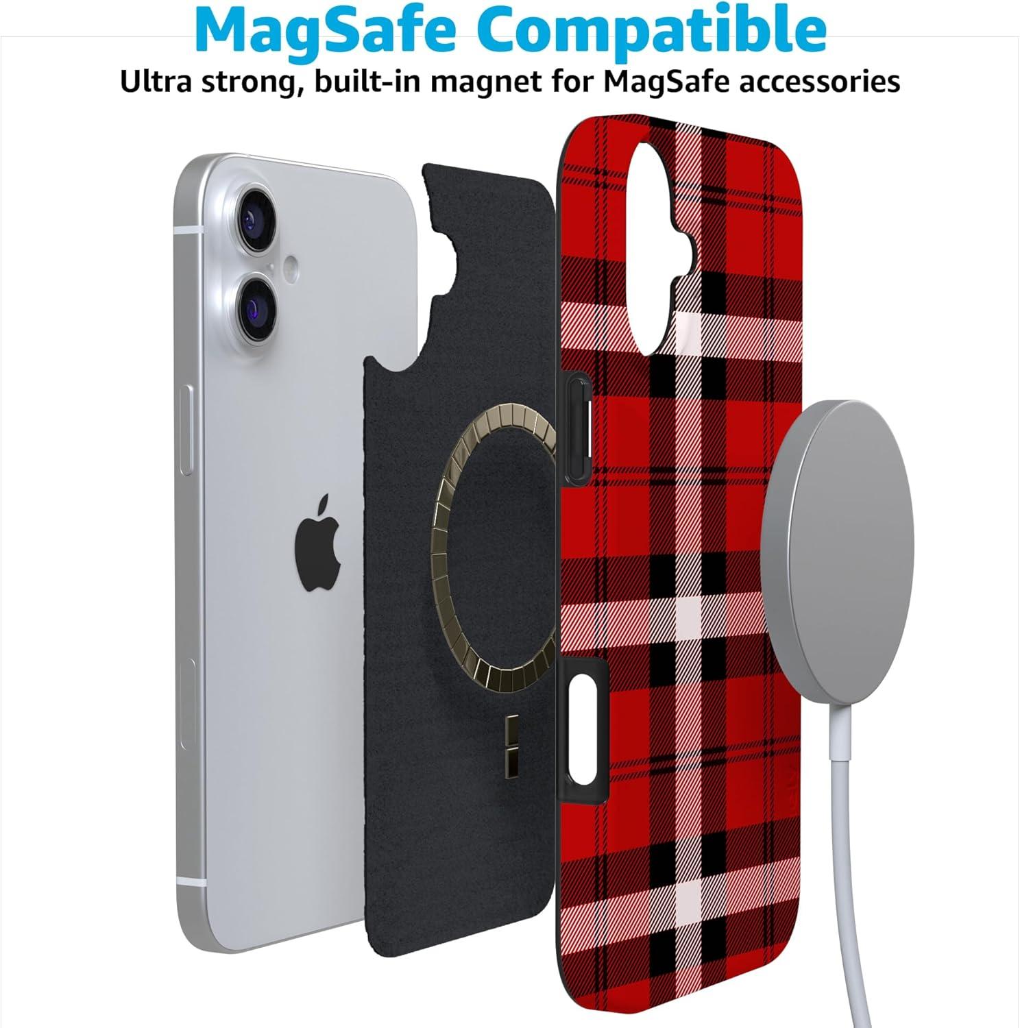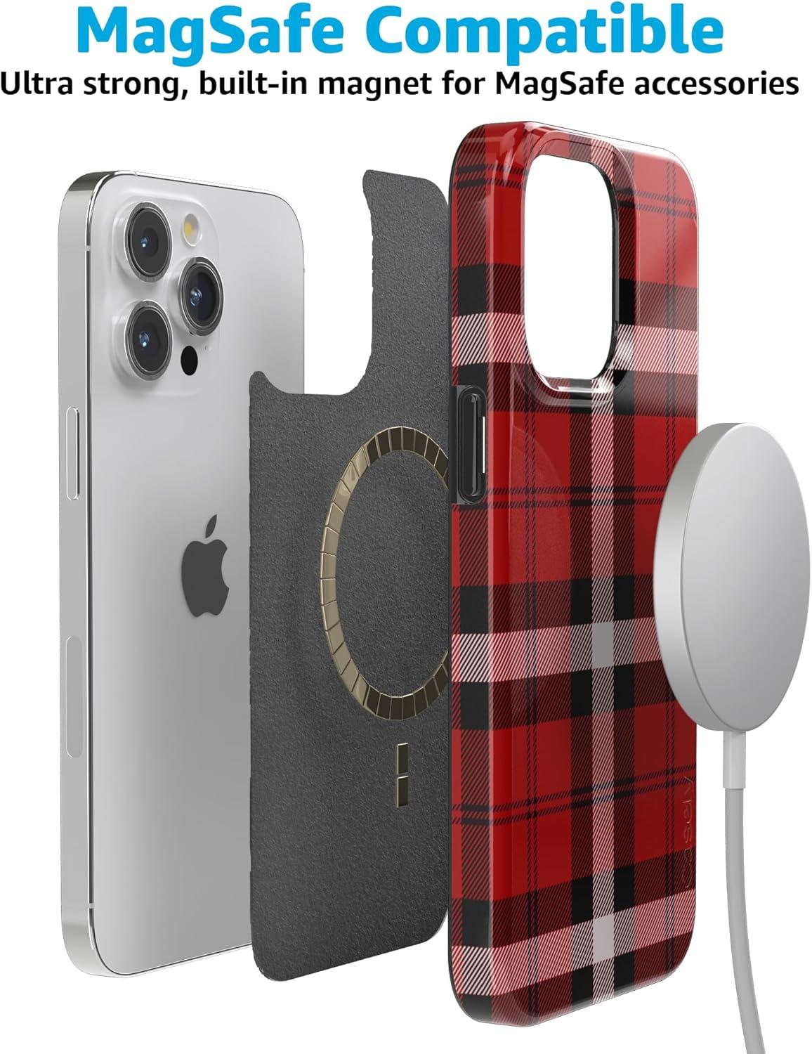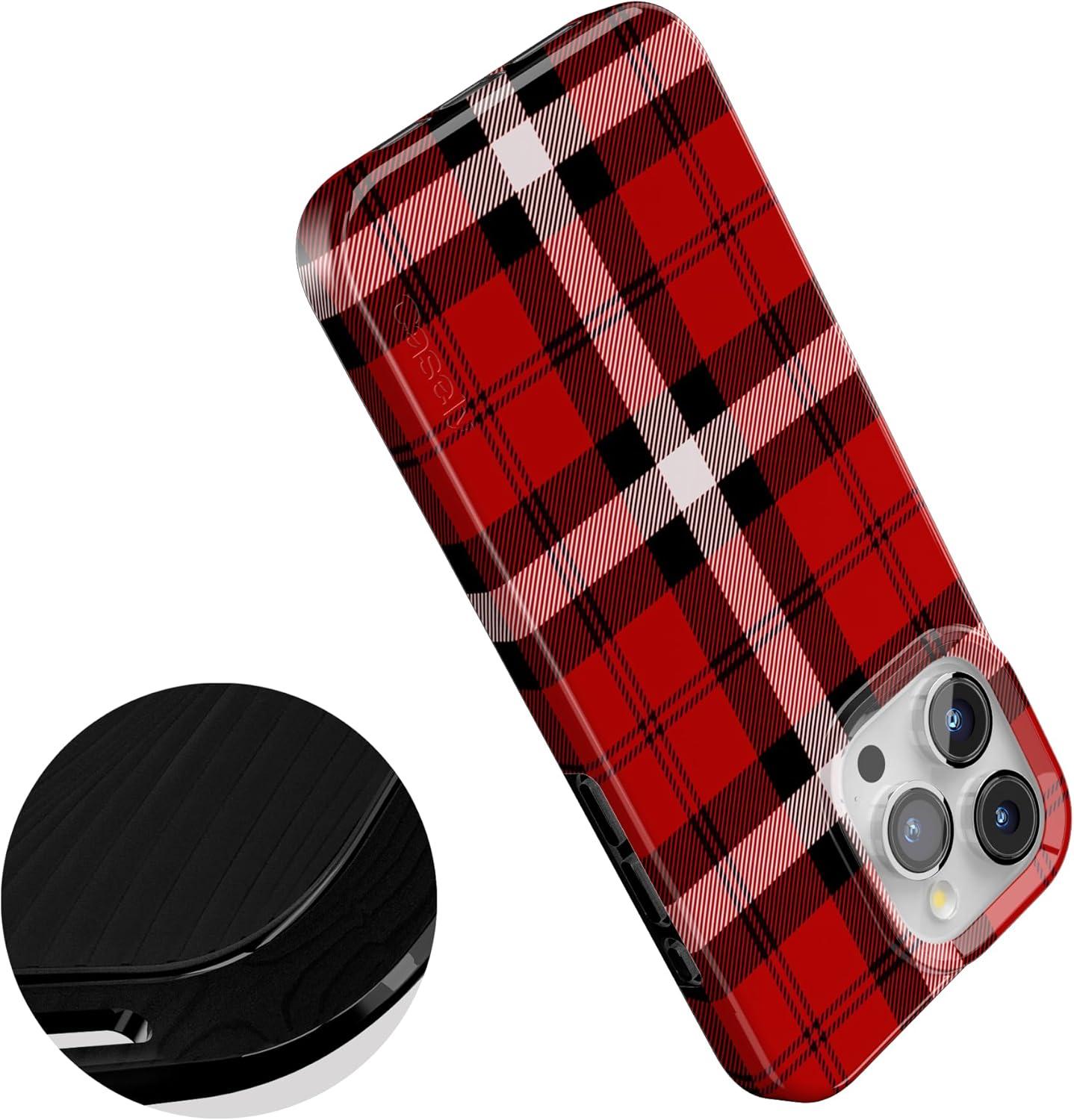 Casely iPhone 17 Pro Case | Sugar Plum Fairy | Winter Wonderland | Compatible with MagSafe | Classic Ultra Slim Design(As if! | Red Plaid)