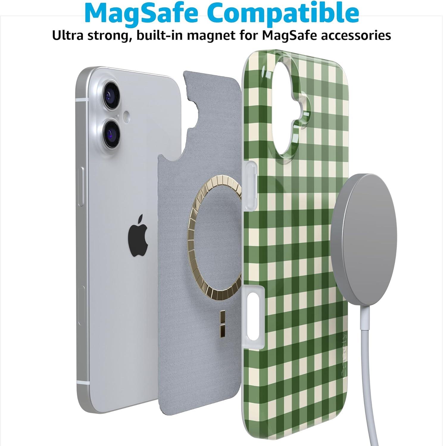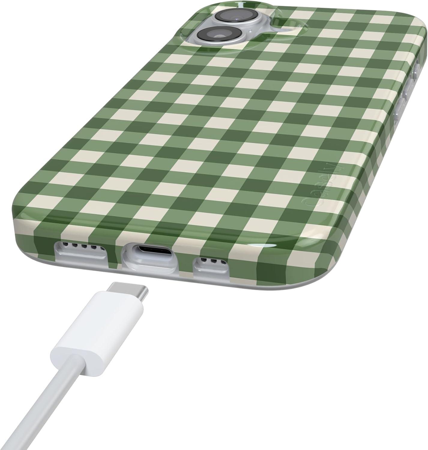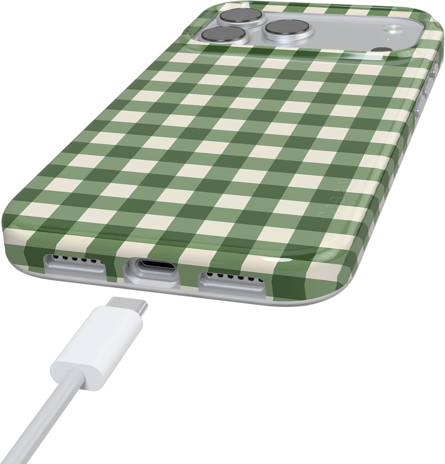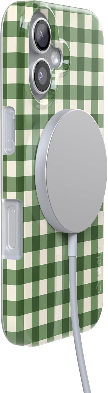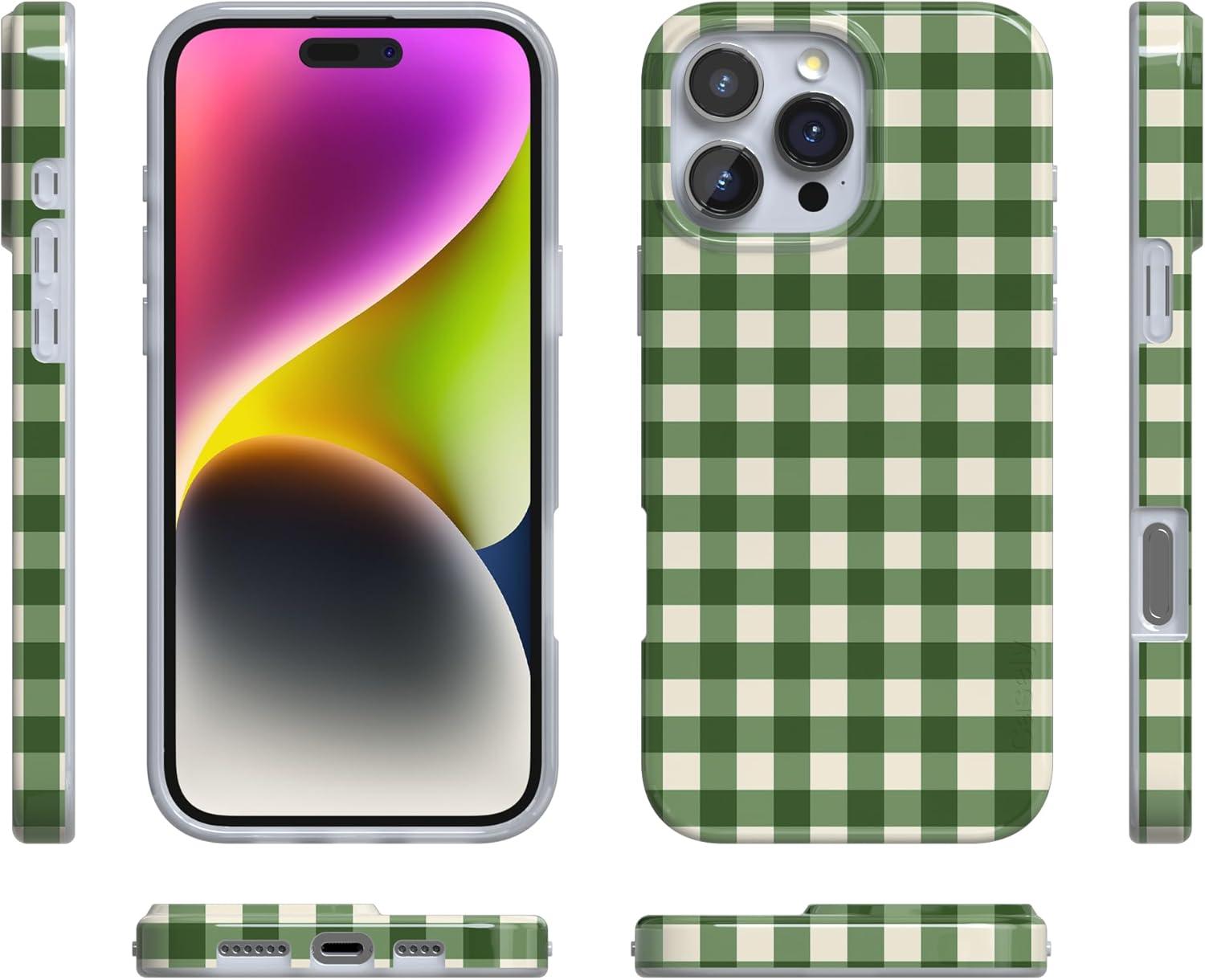 Casely iPhone 17 Pro Case | Sugar Plum Fairy | Winter Wonderland | Compatible with MagSafe | Classic Ultra Slim Design(Checked Twice | Green Plaid)