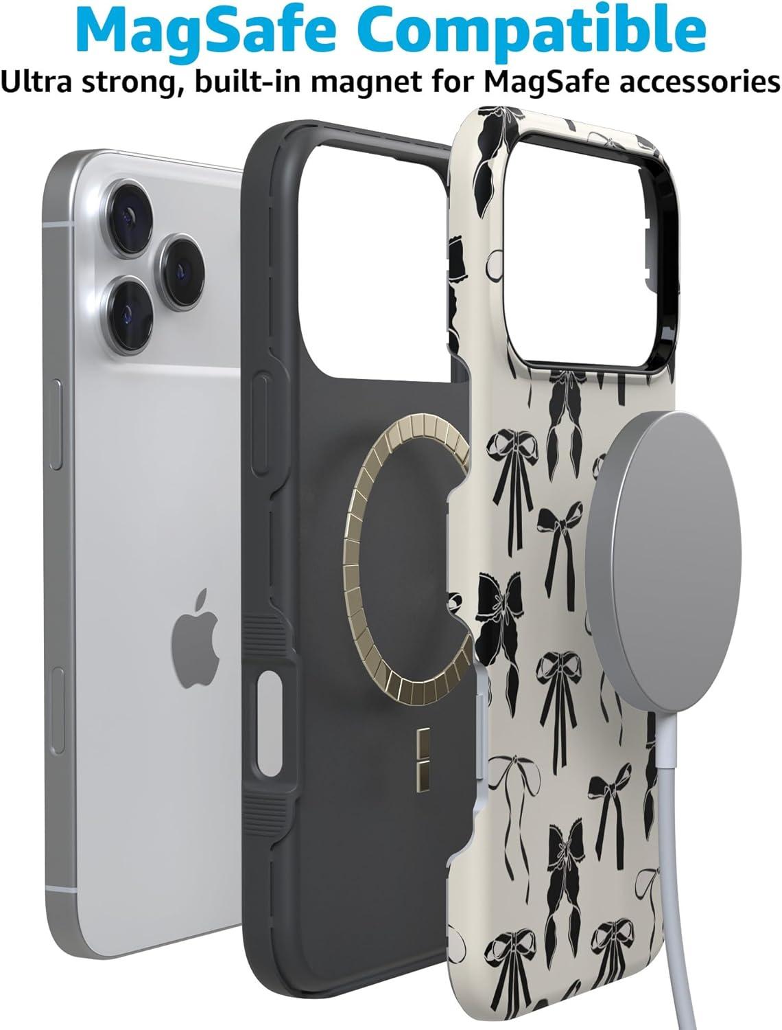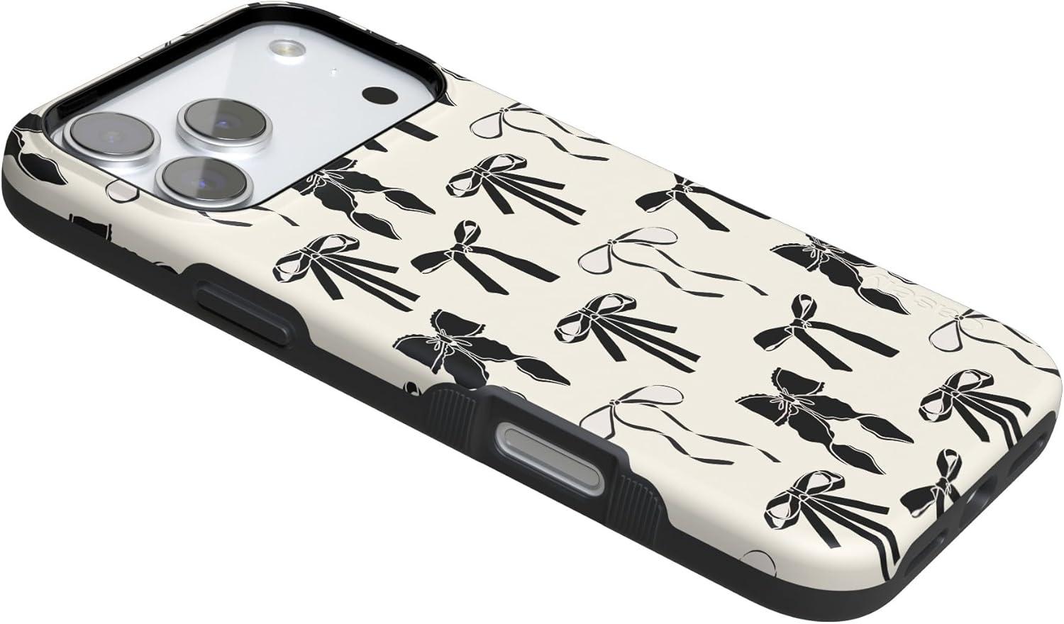 Casely iPhone 17 Pro Case | Twilight Flora | Moody Monochrome | Bold Protective Design | Compatible with MagSafe(Black Bows | Goth Girlie)