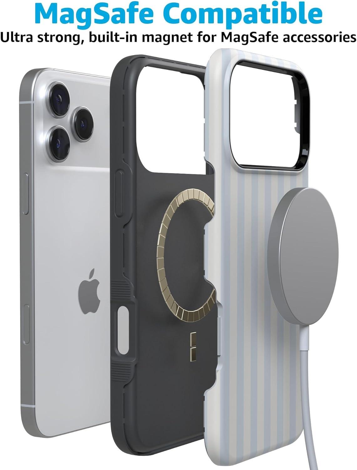 Casely iPhone 17 Pro Case | Twilight Flora | Moody Monochrome | Bold Protective Design | Compatible with MagSafe(Blue Stripes | Sunday Best)