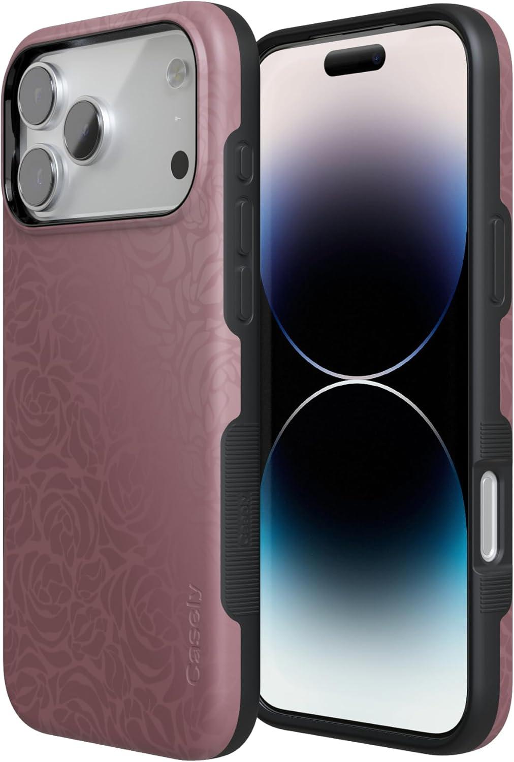 Casely iPhone 17 Pro Case | Twilight Flora | Moody Monochrome | Bold Protective Design | Compatible with MagSafe(Bordeaux Rose | Moody Monochrome)