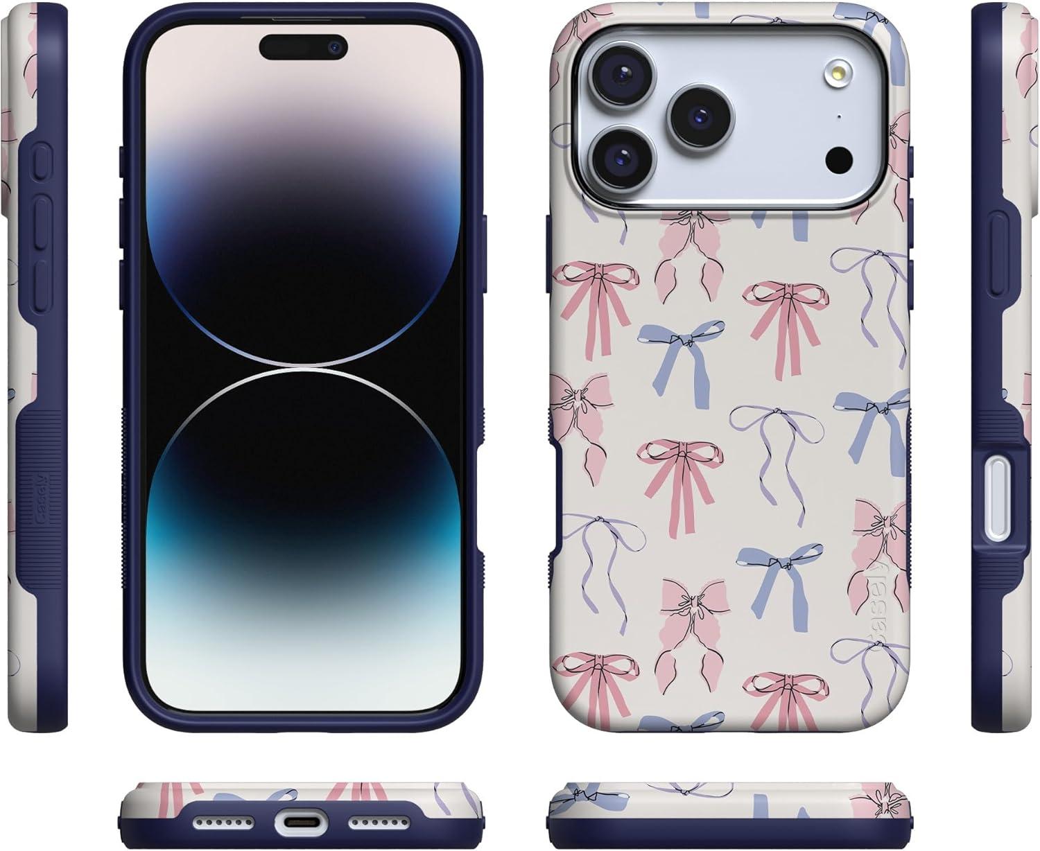 Casely iPhone 17 Pro Case | Twilight Flora | Moody Monochrome | Bold Protective Design | Compatible with MagSafe(Coquette Girlie | Pastel Bows)