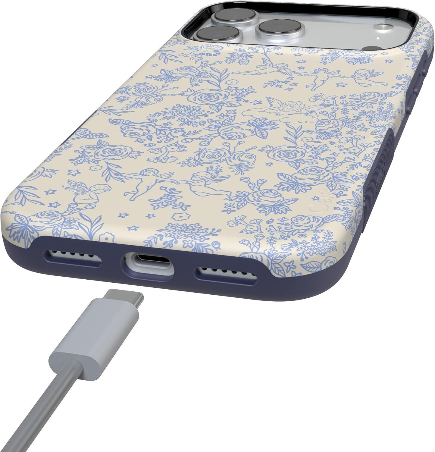 Casely iPhone 17 Pro Case | Twilight Flora | Moody Monochrome | Bold Protective Design | Compatible with MagSafe(Cupid’s Canvas | Periwinkle Floral)