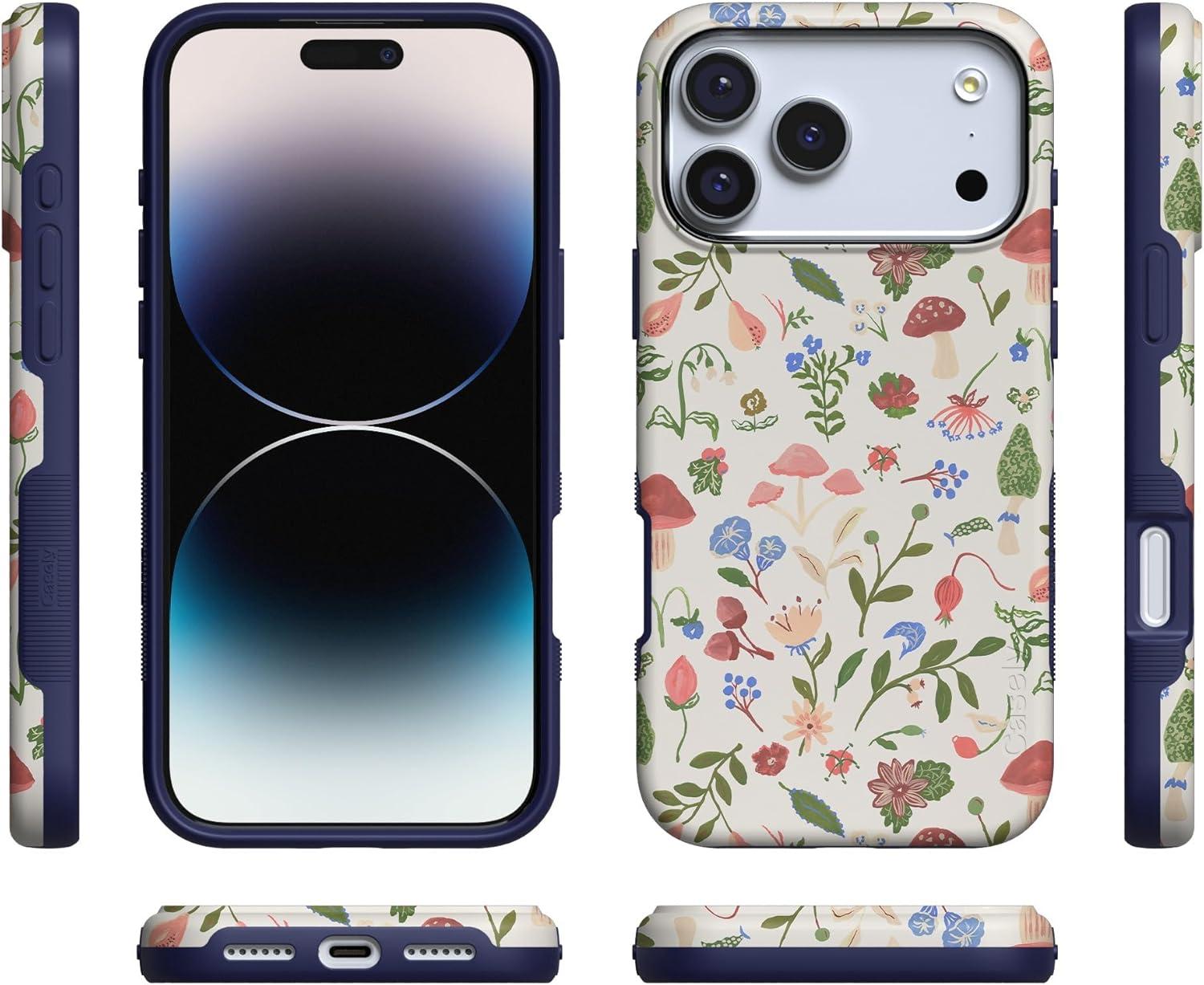Casely iPhone 17 Pro Case | Twilight Flora | Moody Monochrome | Bold Protective Design | Compatible with MagSafe(Garden Party | Mushroom Floral)