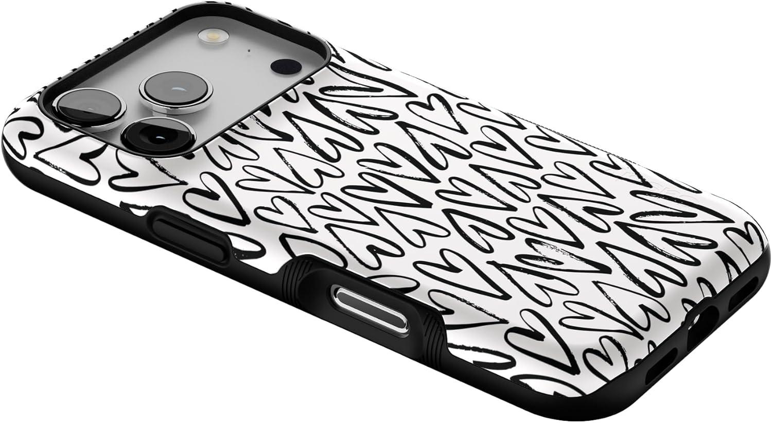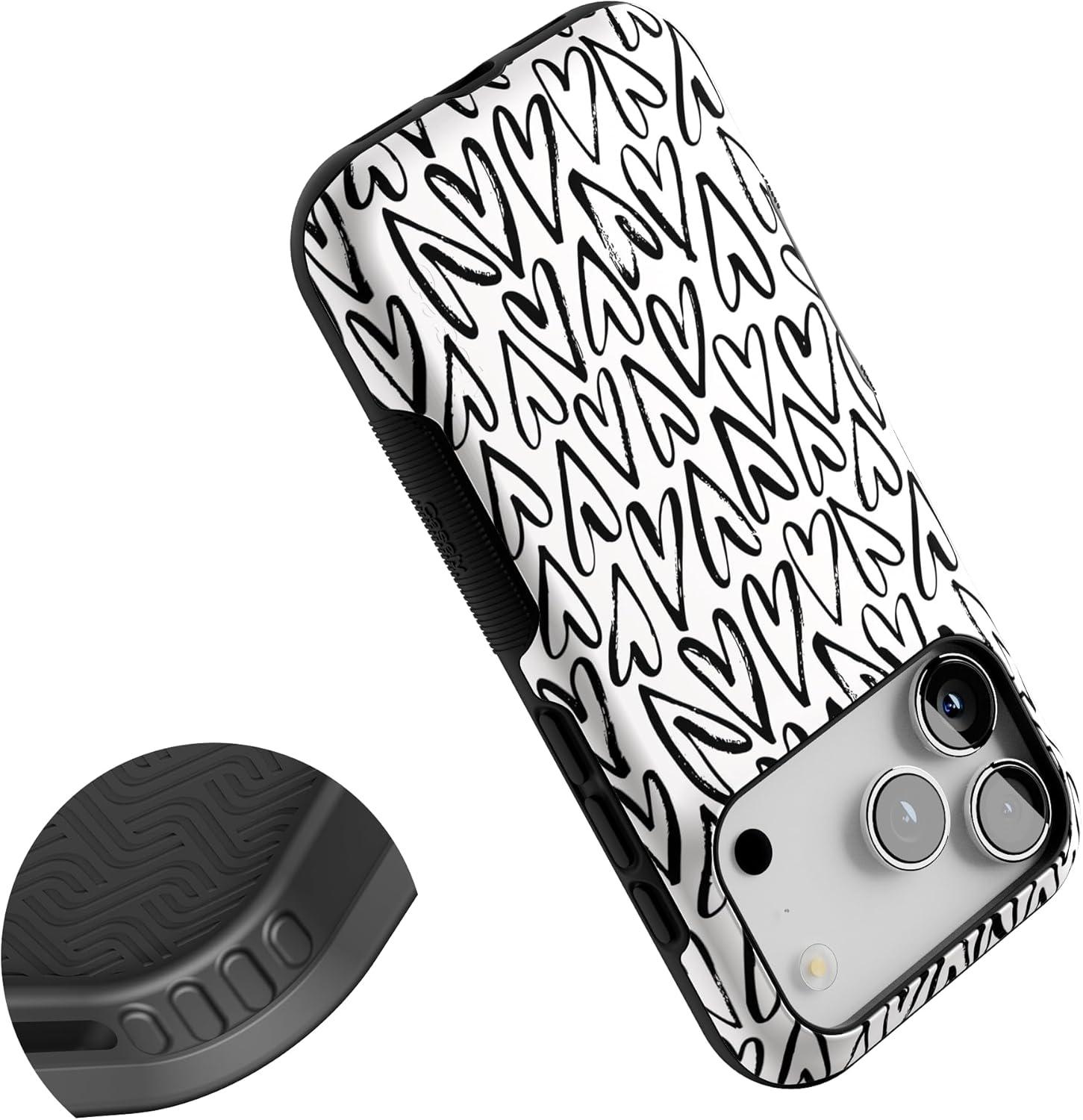 Casely iPhone 17 Pro Case | Twilight Flora | Moody Monochrome | Bold Protective Design | Compatible with MagSafe(Heart Throb | Endless Hearts)