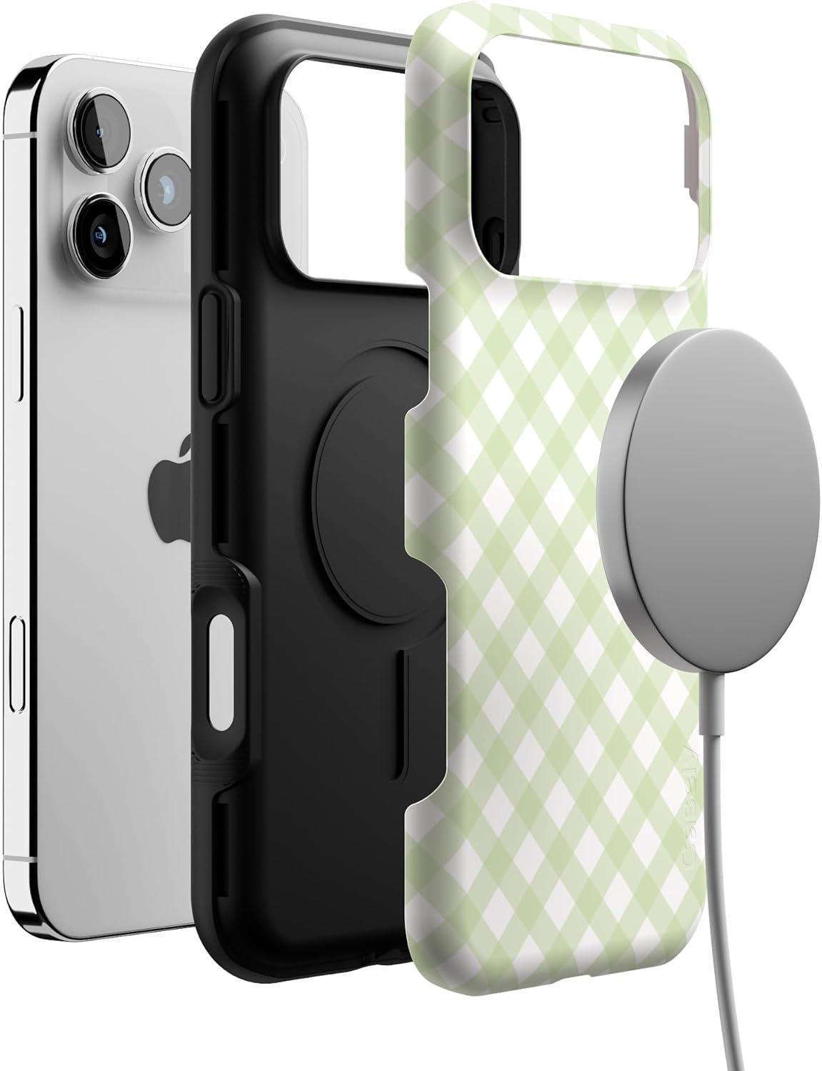 Casely iPhone 17 Pro Case | Twilight Flora | Moody Monochrome | Bold Protective Design | Compatible with MagSafe(Mint Lattice | Sunday Best)