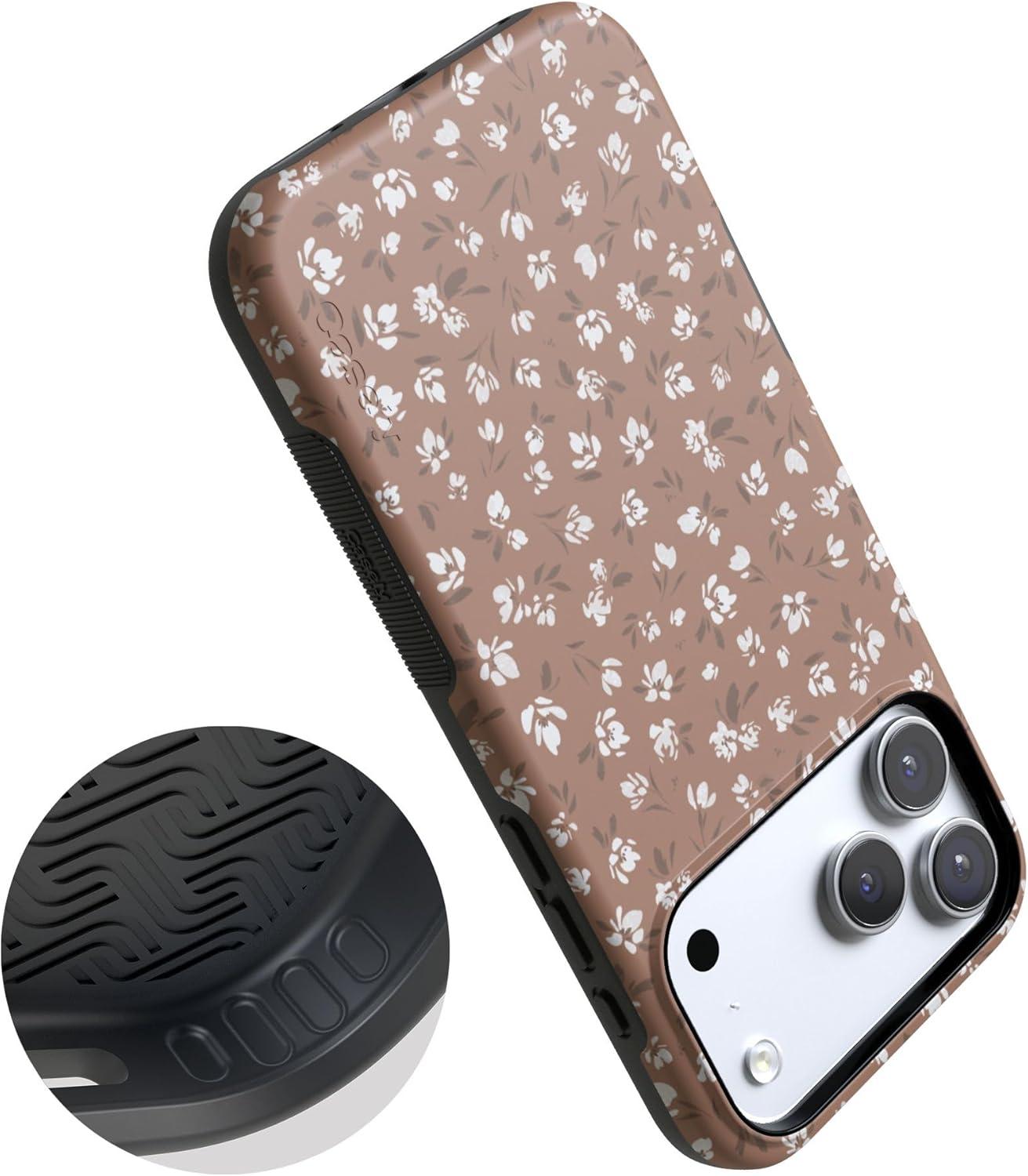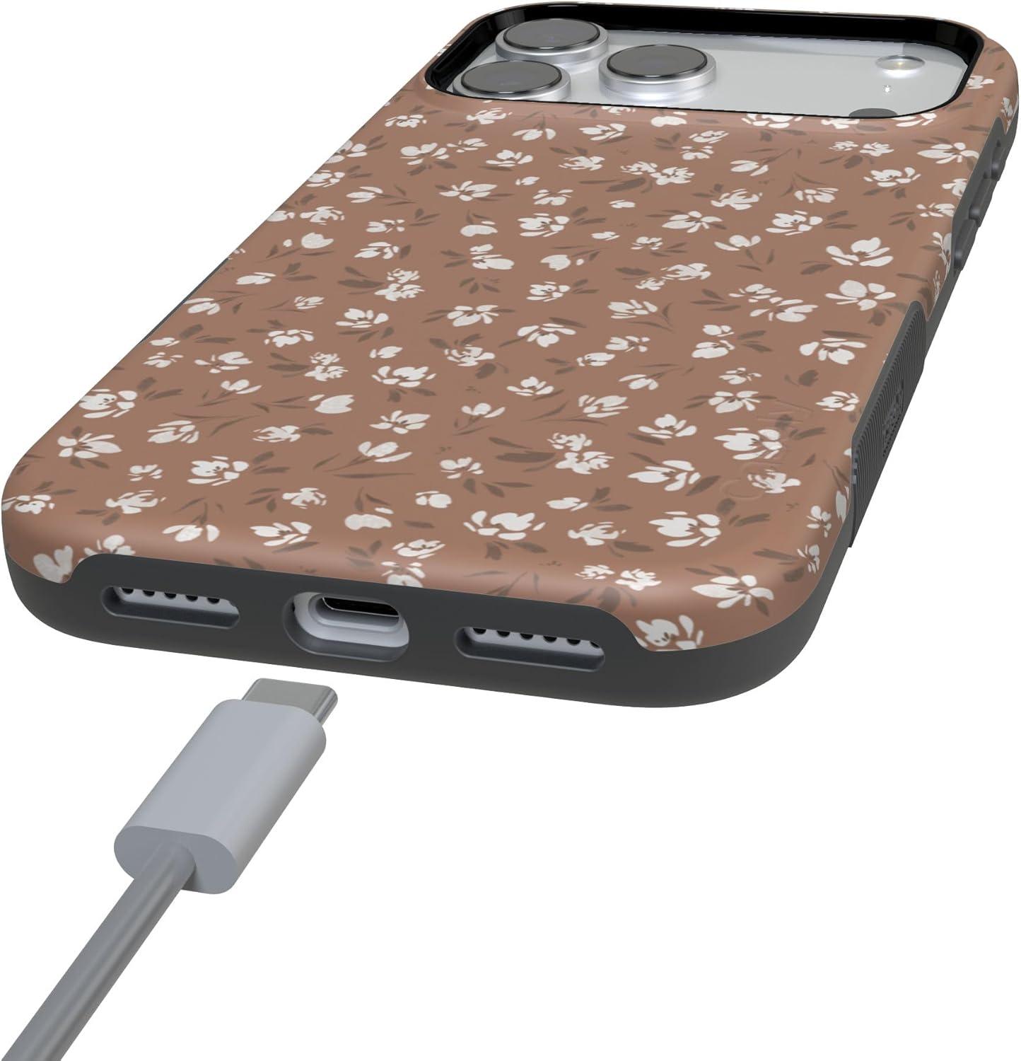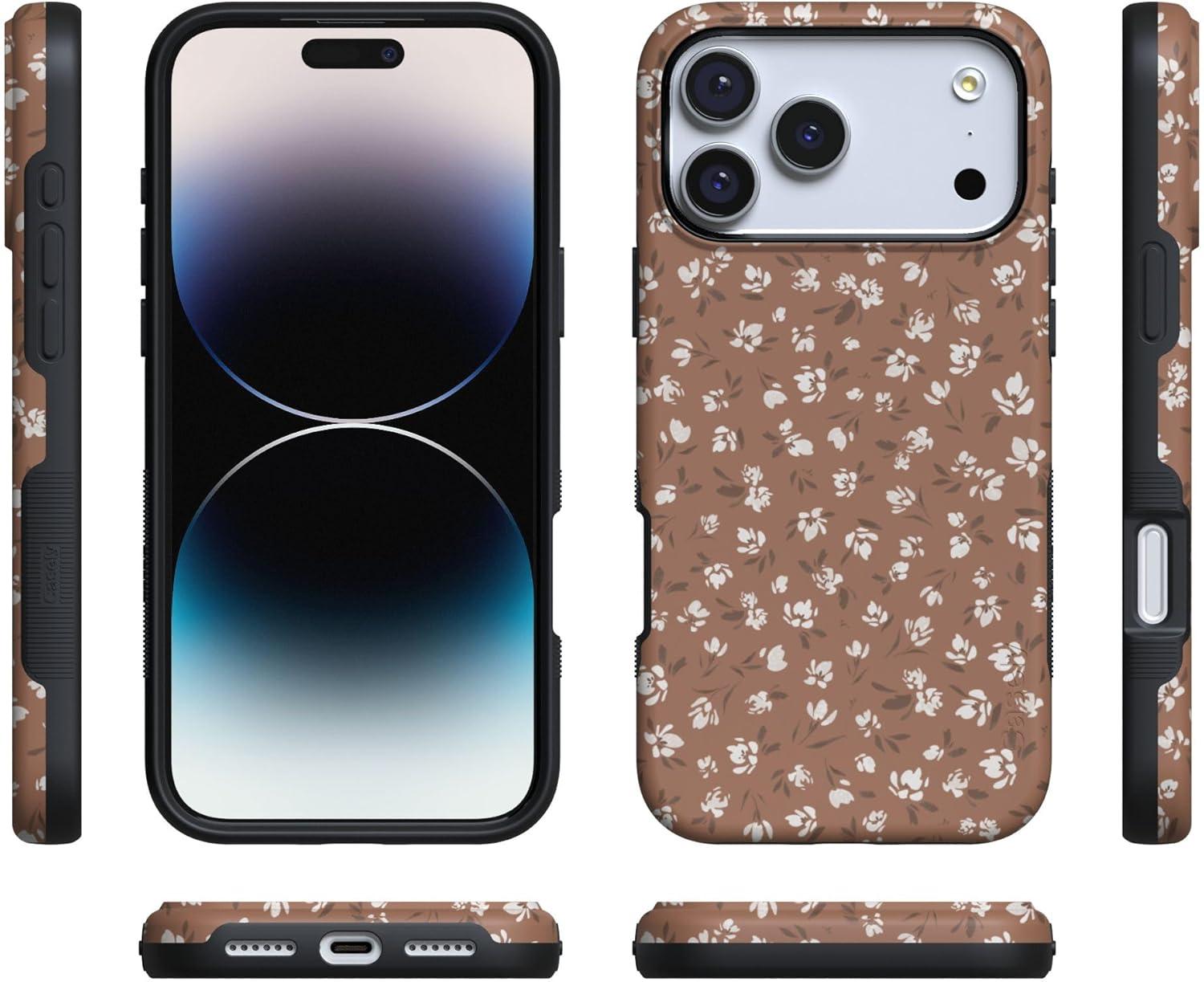 Casely iPhone 17 Pro Case | Twilight Flora | Moody Monochrome | Bold Protective Design | Compatible with MagSafe(Mocha Meadow | Tiny Flowers)