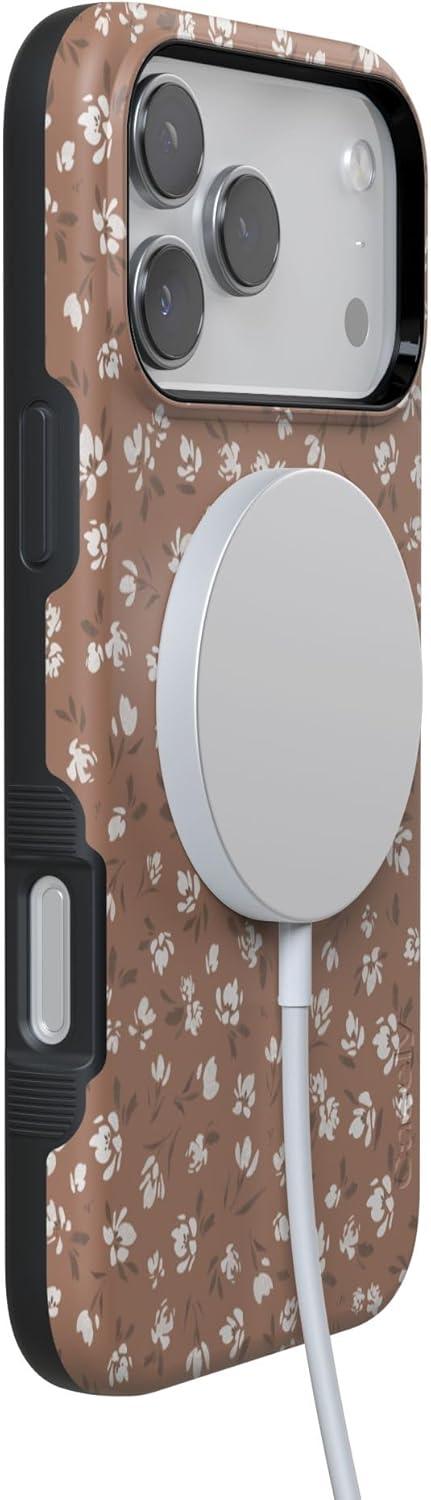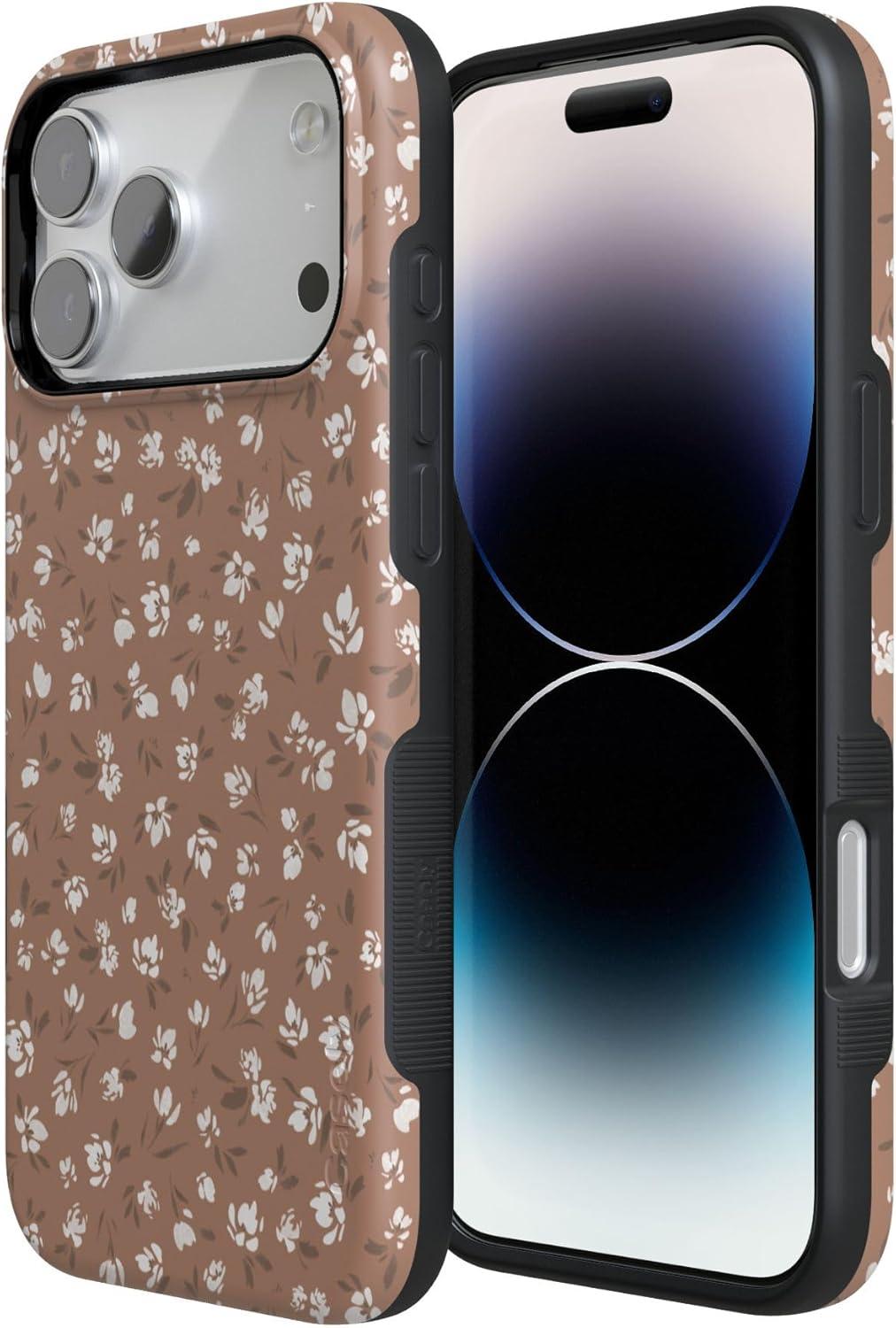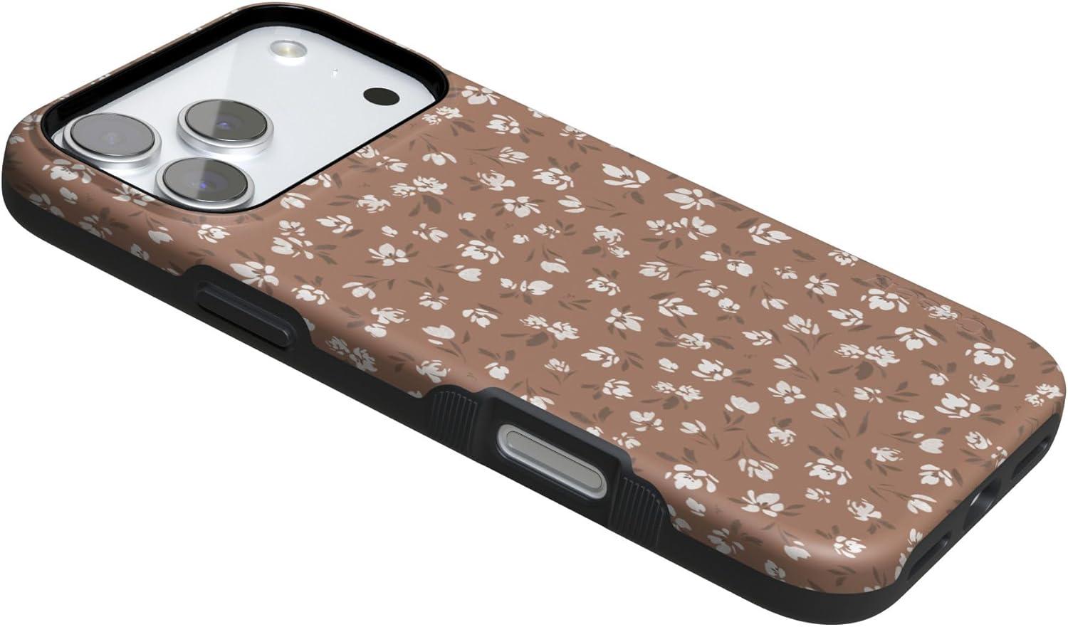 Casely iPhone 17 Pro Case | Twilight Flora | Moody Monochrome | Bold Protective Design | Compatible with MagSafe(Mocha Meadow | Tiny Flowers)