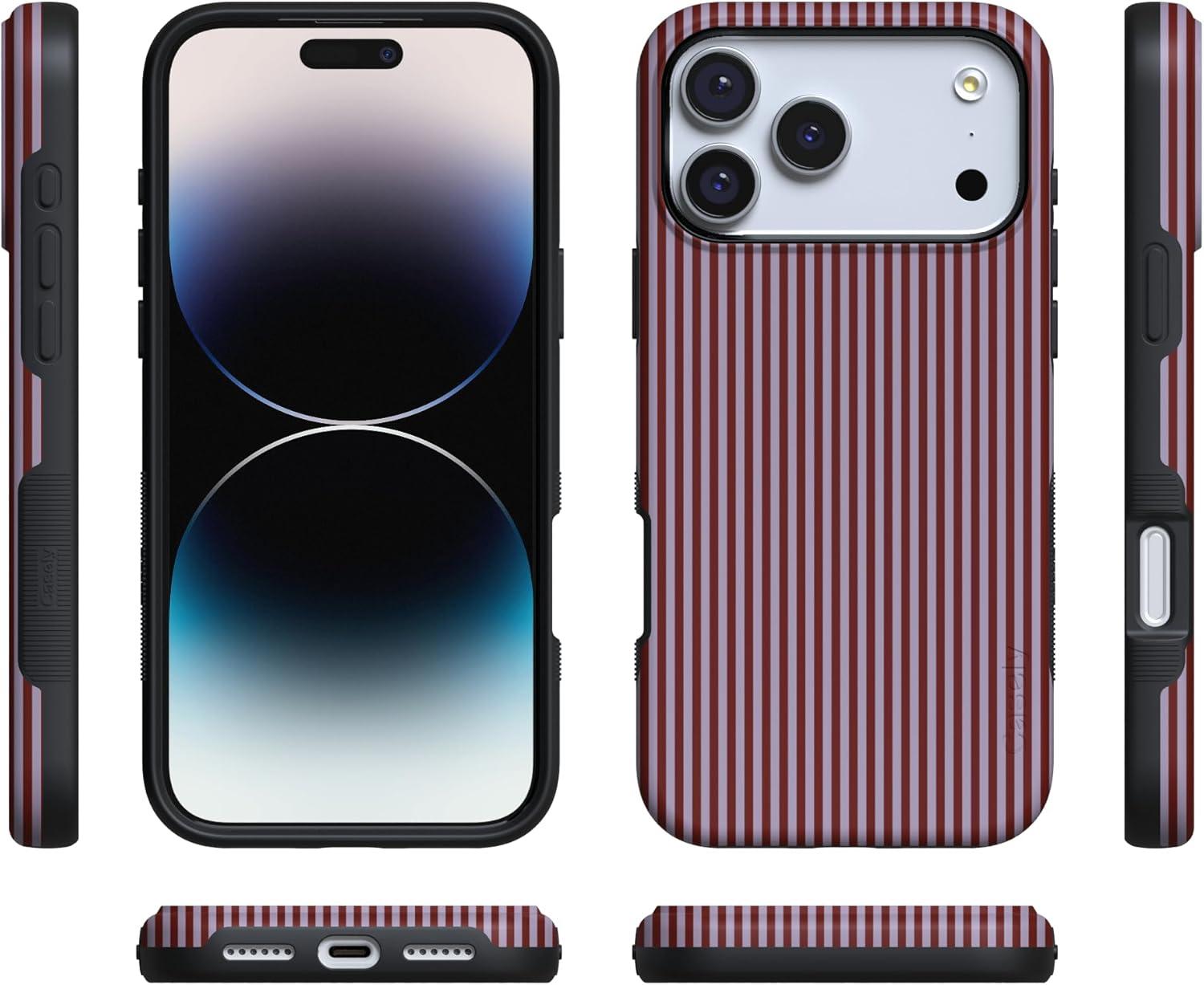 Casely iPhone 17 Pro Case | Twilight Flora | Moody Monochrome | Bold Protective Design | Compatible with MagSafe(Stripes and the City | Tiny Pinstripe)