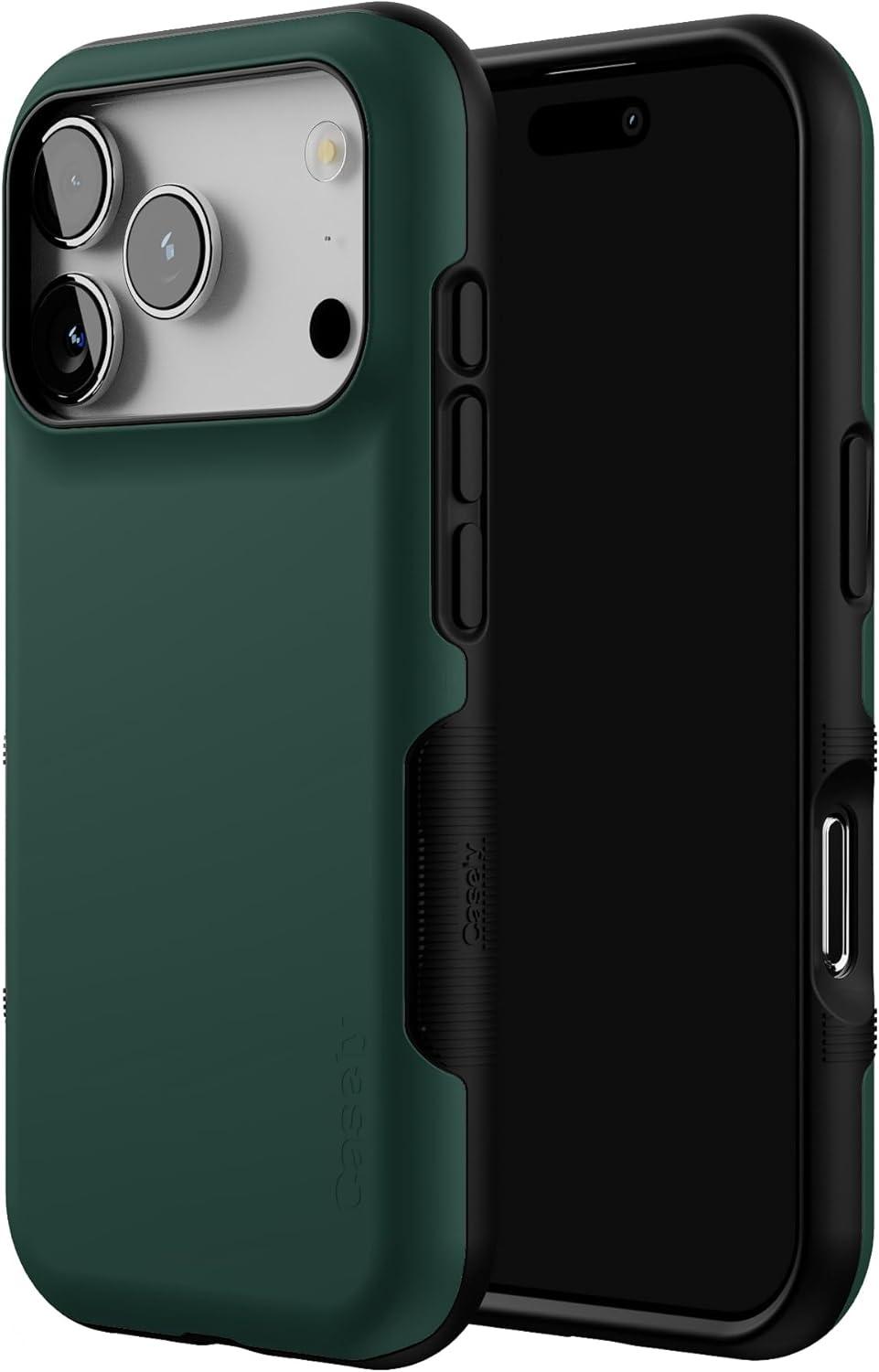 Casely iPhone 17 Pro Case | Twilight Flora | Moody Monochrome | Bold Protective Design | Compatible with MagSafe(The Boyfriend Collection | Forest Green)