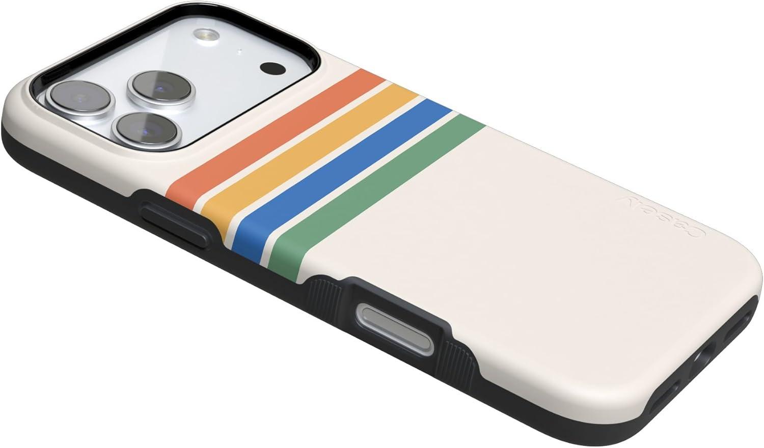 Casely iPhone 17 Pro Case | Twilight Flora | Moody Monochrome | Bold Protective Design | Compatible with MagSafe(Totally Groovy | Rainbow Stripes Color Block)