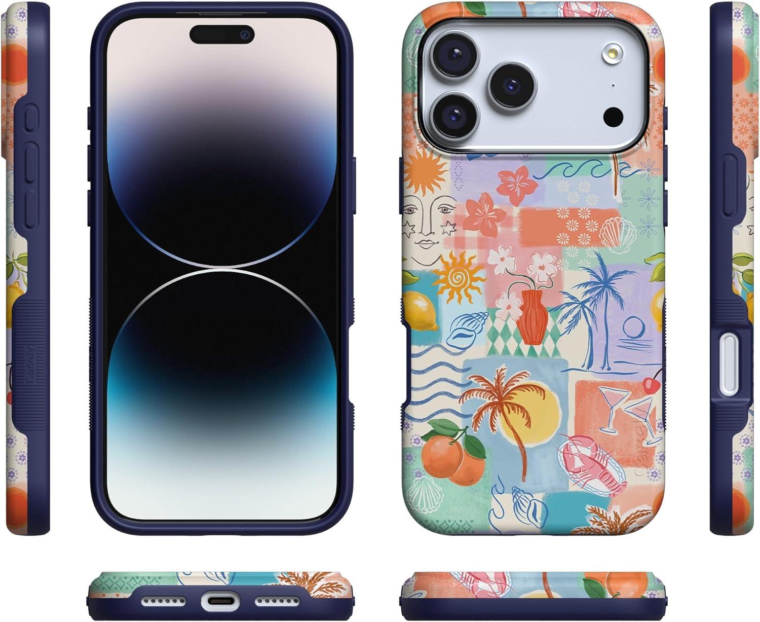 Casely iPhone 17 Pro Case | Twilight Flora | Moody Monochrome | Bold Protective Design | Compatible with MagSafe(Tropical Heat | Beachy Collage)