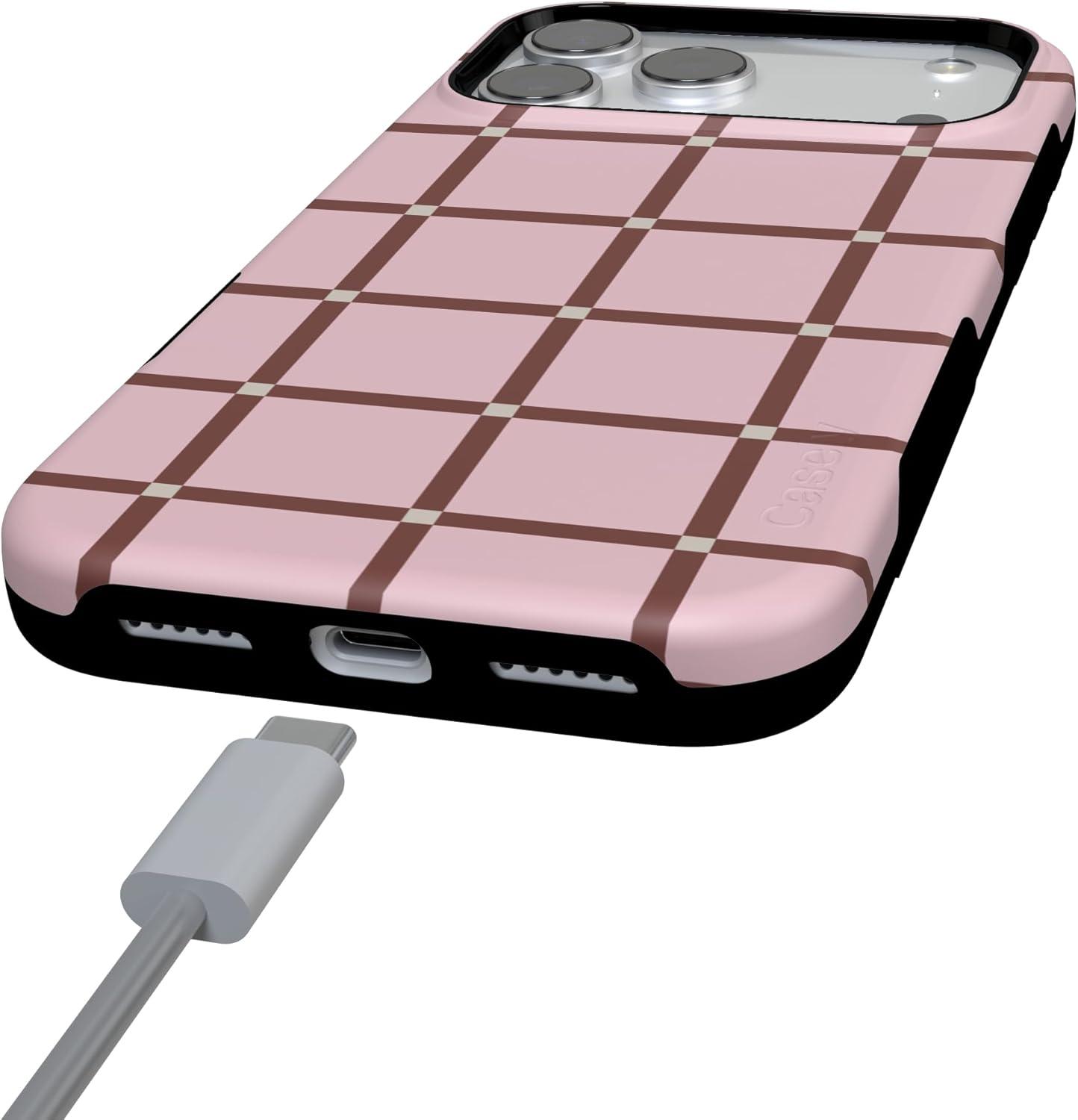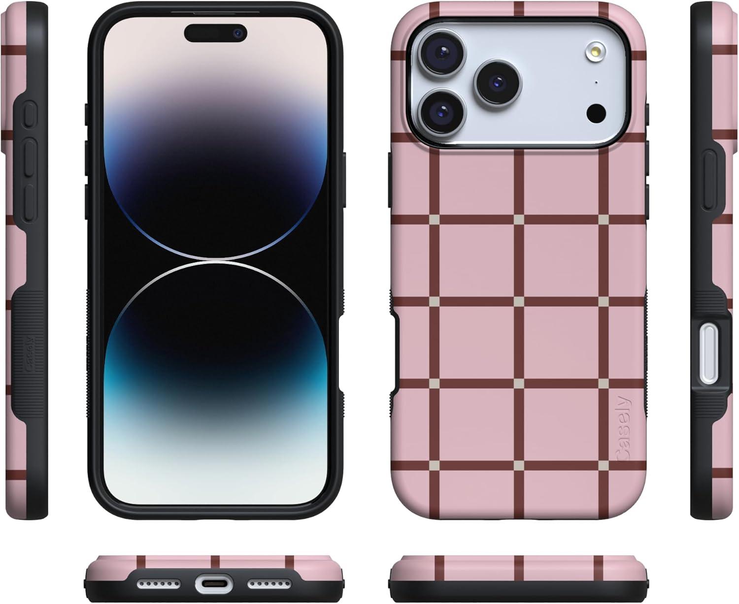Casely iPhone 17 Pro Case | Twilight Flora | Moody Monochrome | Bold Protective Design | Compatible with MagSafe(Uptown Gridlock | Pink Checkerboard)