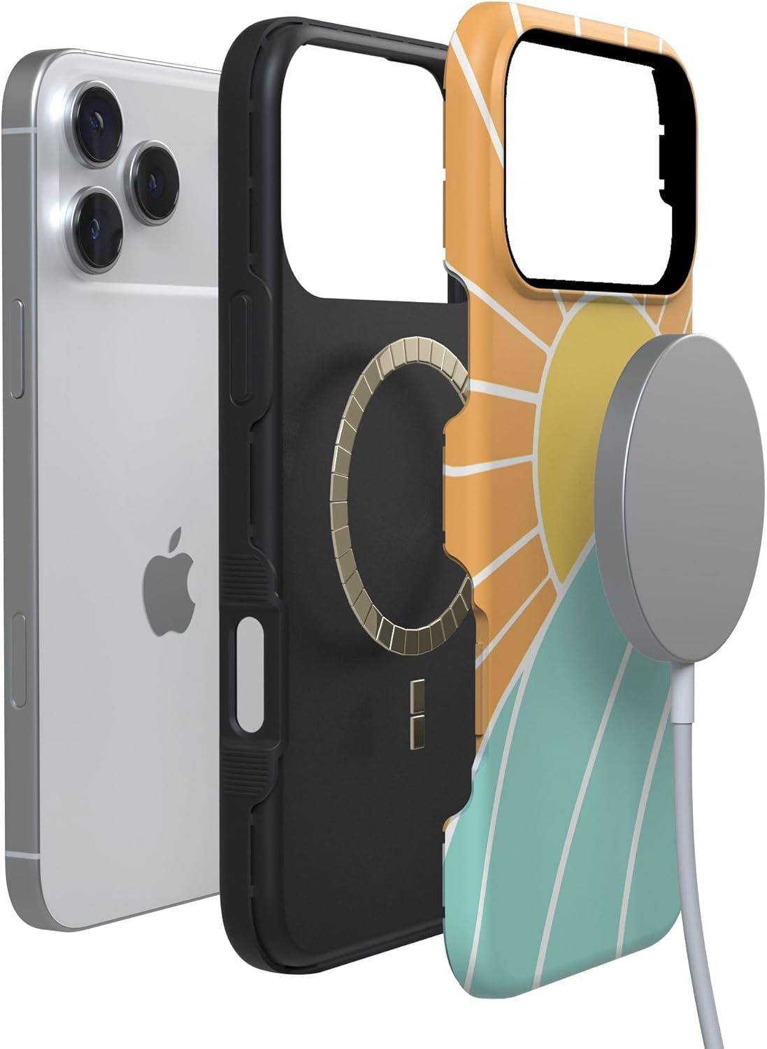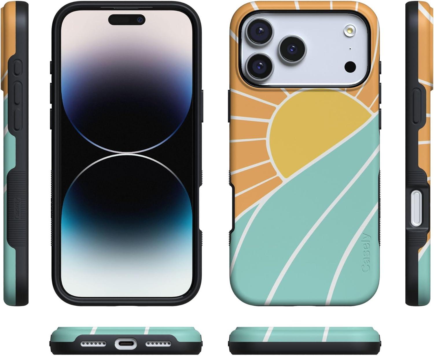 Casely iPhone 17 Pro Case | Twilight Flora | Moody Monochrome | Bold Protective Design | Compatible with MagSafe(Waves & Rays | Sunshine)