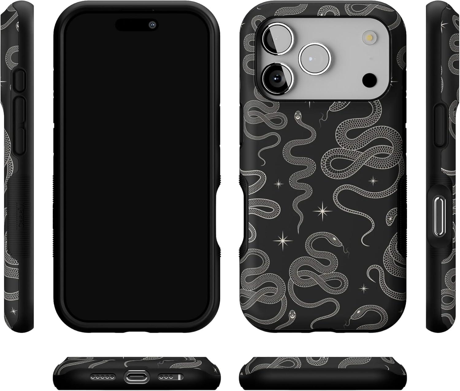 Casely iPhone 17 Pro Case | Twilight Flora | Moody Monochrome | Bold Protective Design | Compatible with MagSafe(We’re Ready For It | Black Serpent)