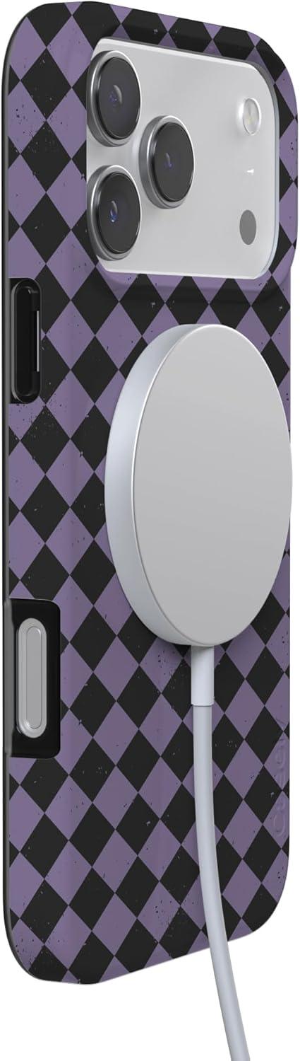 Casely iPhone 17 Pro Case | Western Bloom | Jenna Palek x Casely | Compatible with MagSafe | Classic Ultra Thin Design(Harlequin Midnight Diamond | Black and Purple)