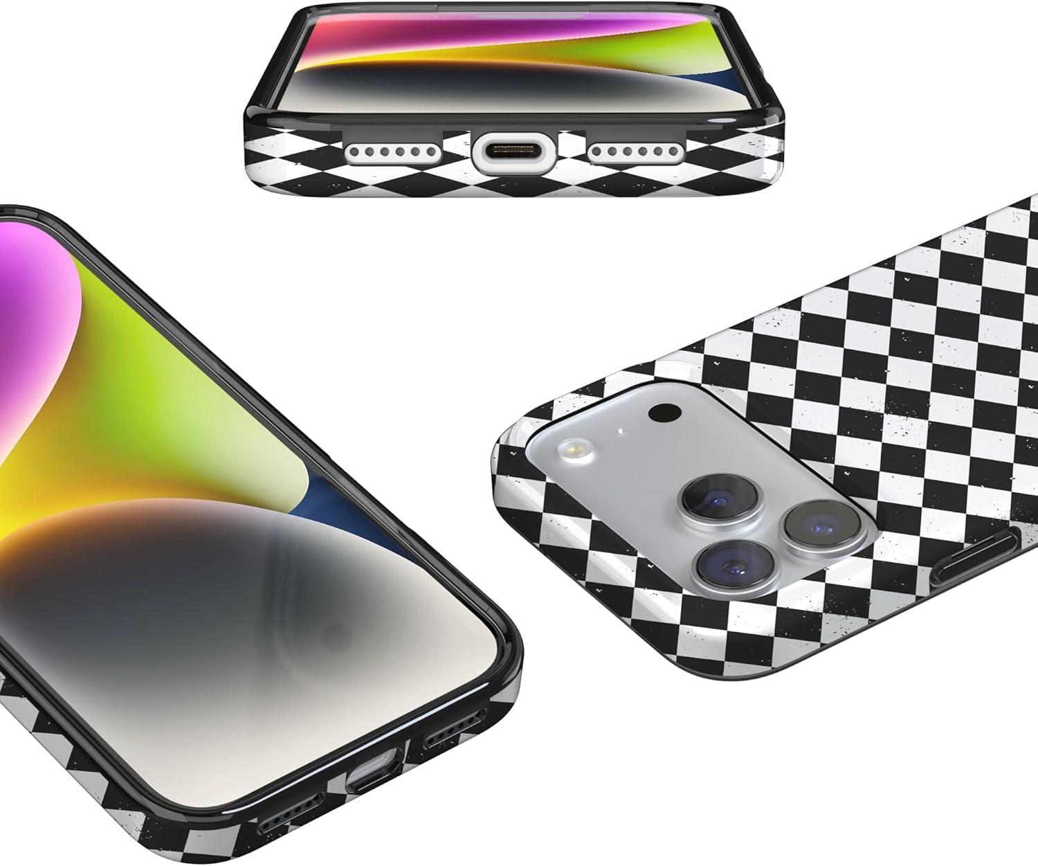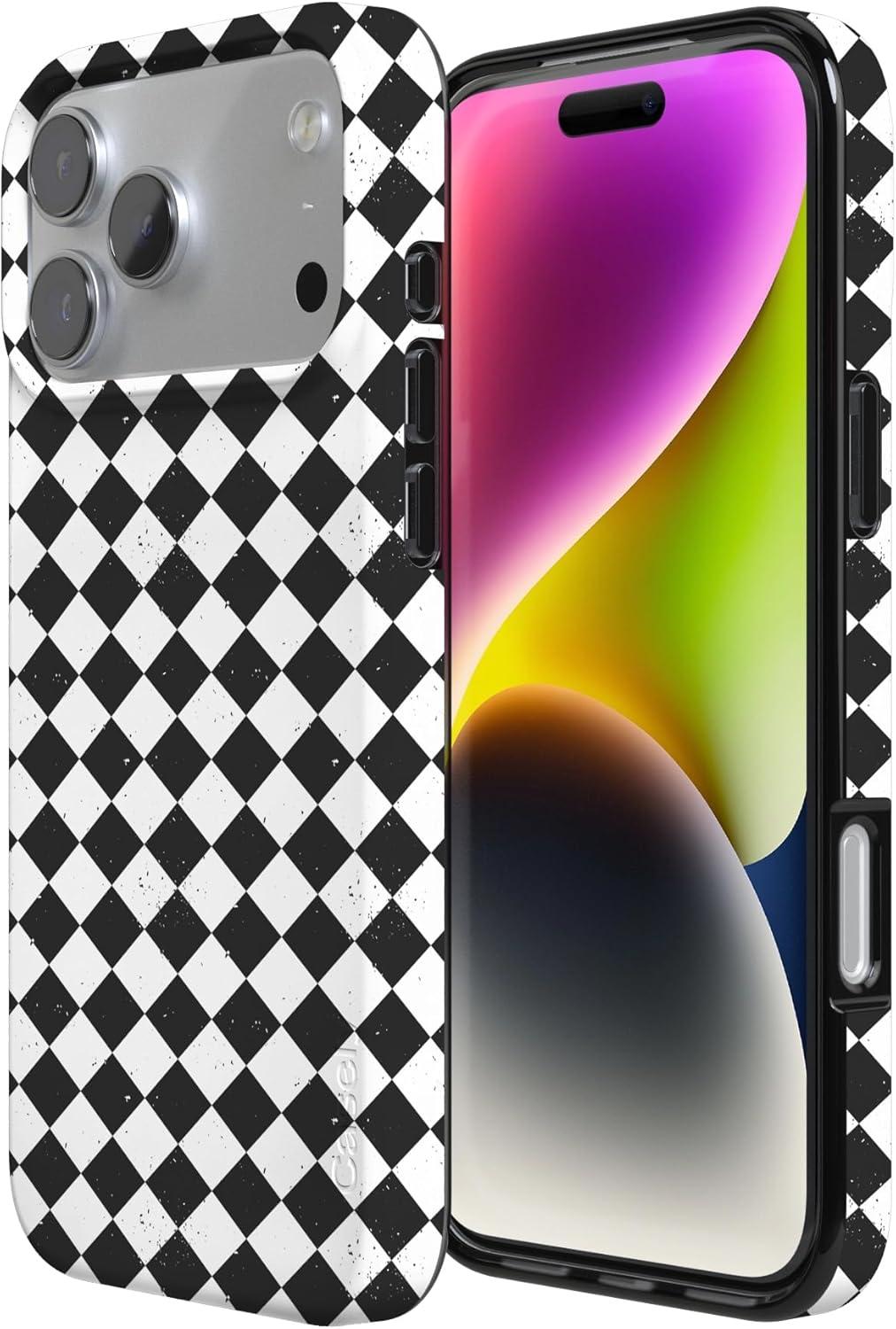 Casely iPhone 17 Pro Case | Western Bloom | Jenna Palek x Casely | Compatible with MagSafe | Classic Ultra Thin Design(Harlequin Salem Diamond | Black and White)