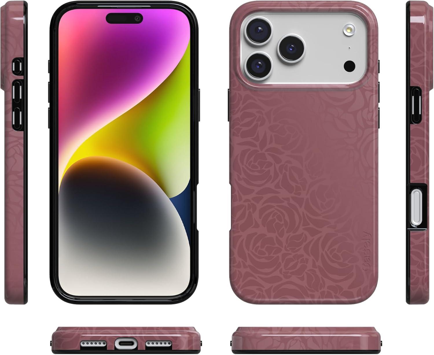 Casely iPhone 17 Pro Case | Western Bloom | Jenna Palek x Casely | Compatible with MagSafe | Classic Ultra Thin Design(Moody Monochrome | Bordeaux Rose)