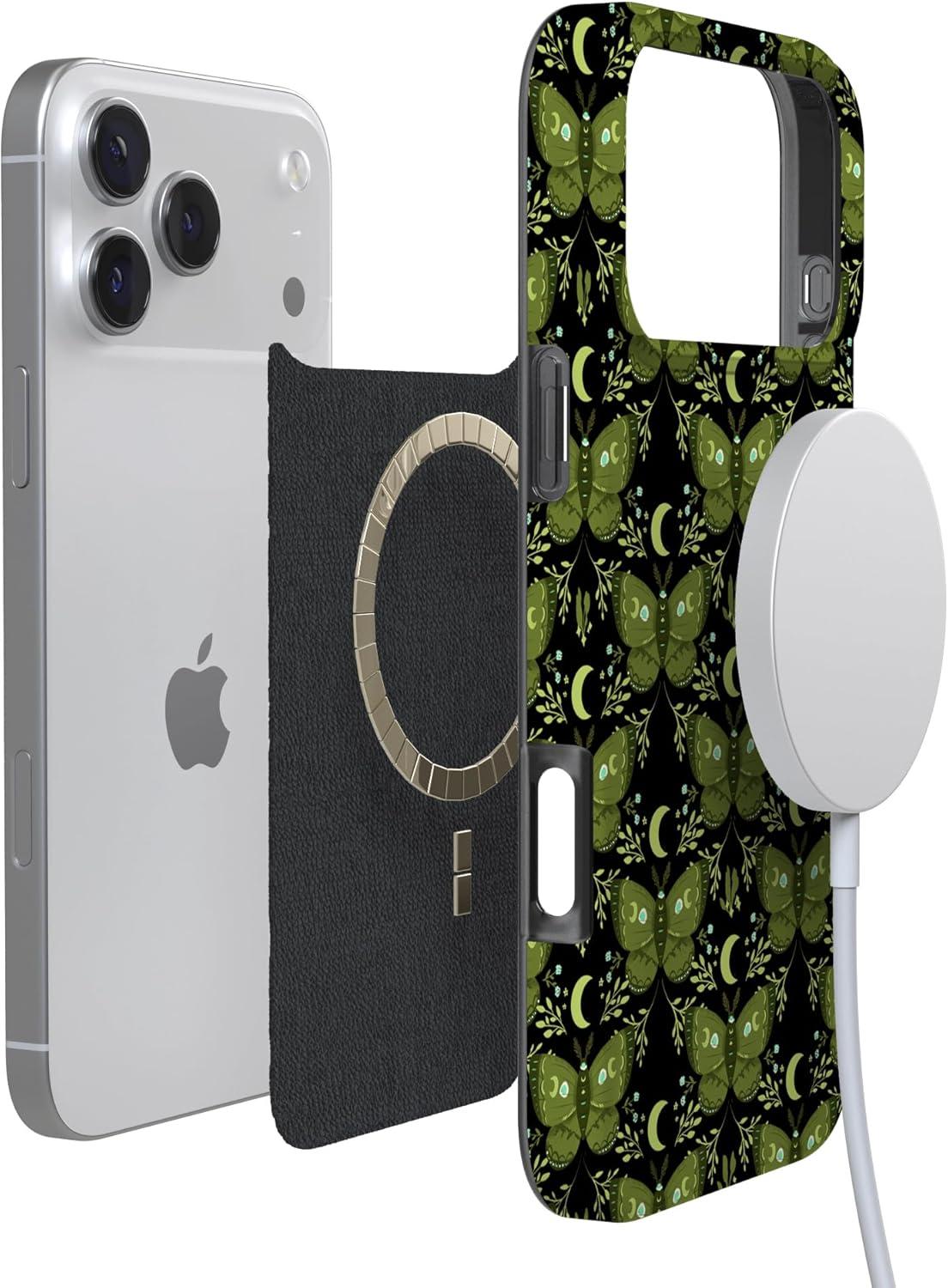 Casely iPhone 17 Pro Case | Western Bloom | Jenna Palek x Casely | Compatible with MagSafe | Classic Ultra Thin Design(Mystic Moths | Green Twilight)