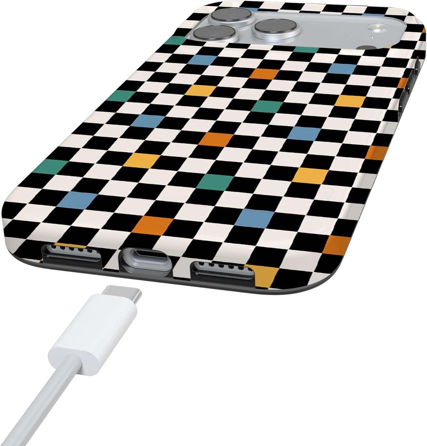 Casely iPhone 17 Pro Case | Western Bloom | Jenna Palek x Casely | Compatible with MagSafe | Classic Ultra Thin Design(Old Skool | Retro Checkerboard)