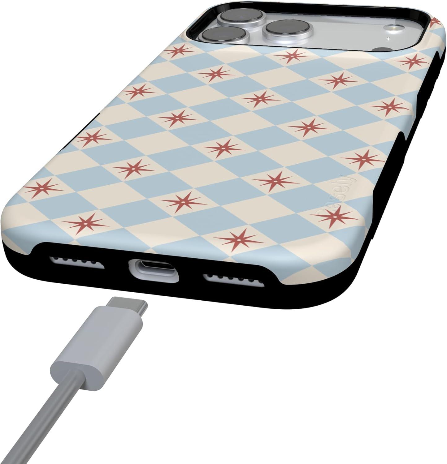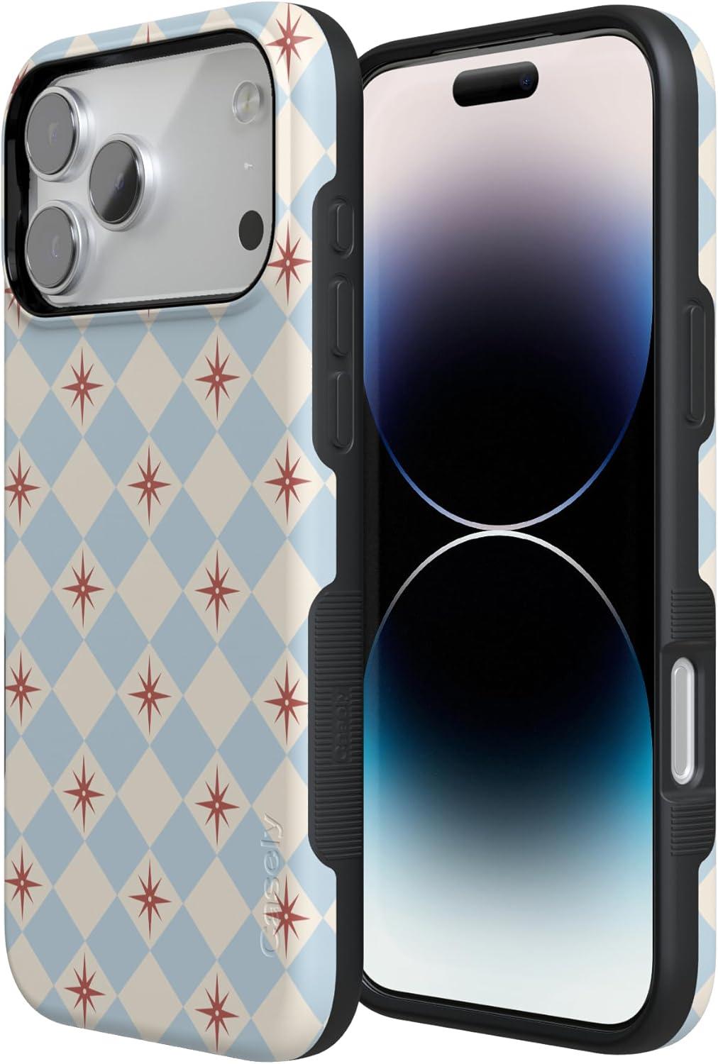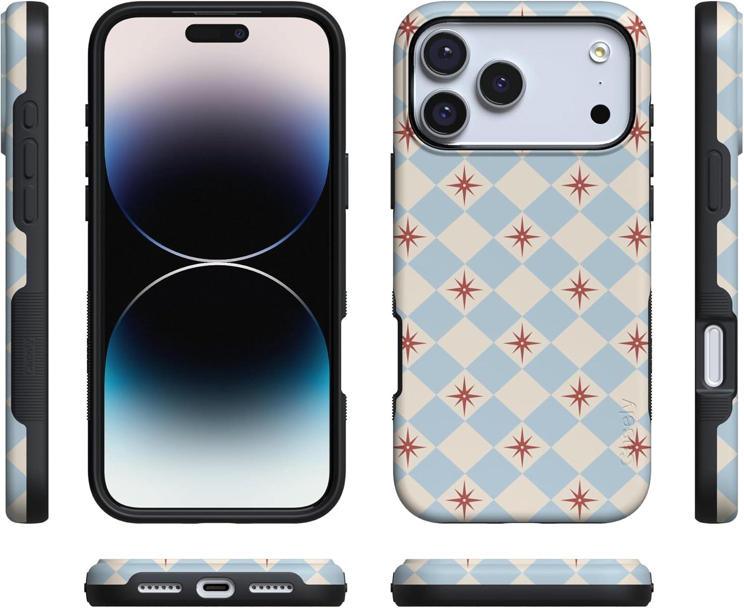 Casely iPhone 17 Pro Max Case | Bordeaux Rose | Moody Monochrome | Bold Protective Design | Compatible with MagSafe(Chelsea Checker | Starlight Tiles)