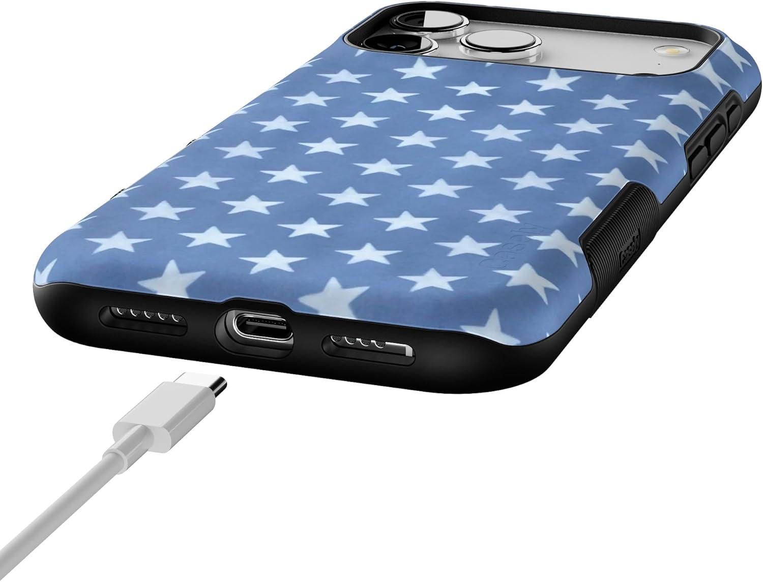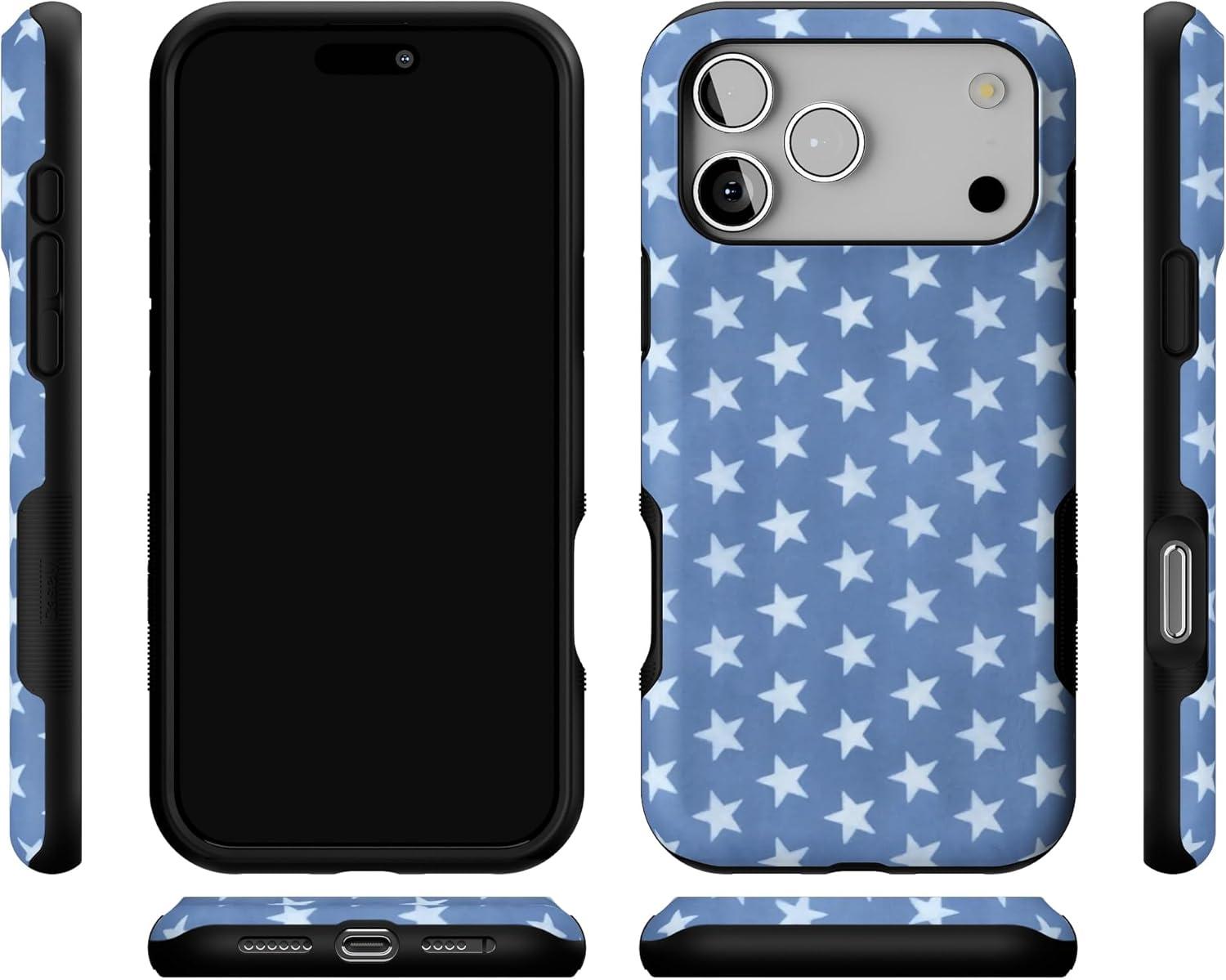 Casely iPhone 17 Pro Max Case | Bordeaux Rose | Moody Monochrome | Bold Protective Design | Compatible with MagSafe(Coastal Blues | Denim Stars)