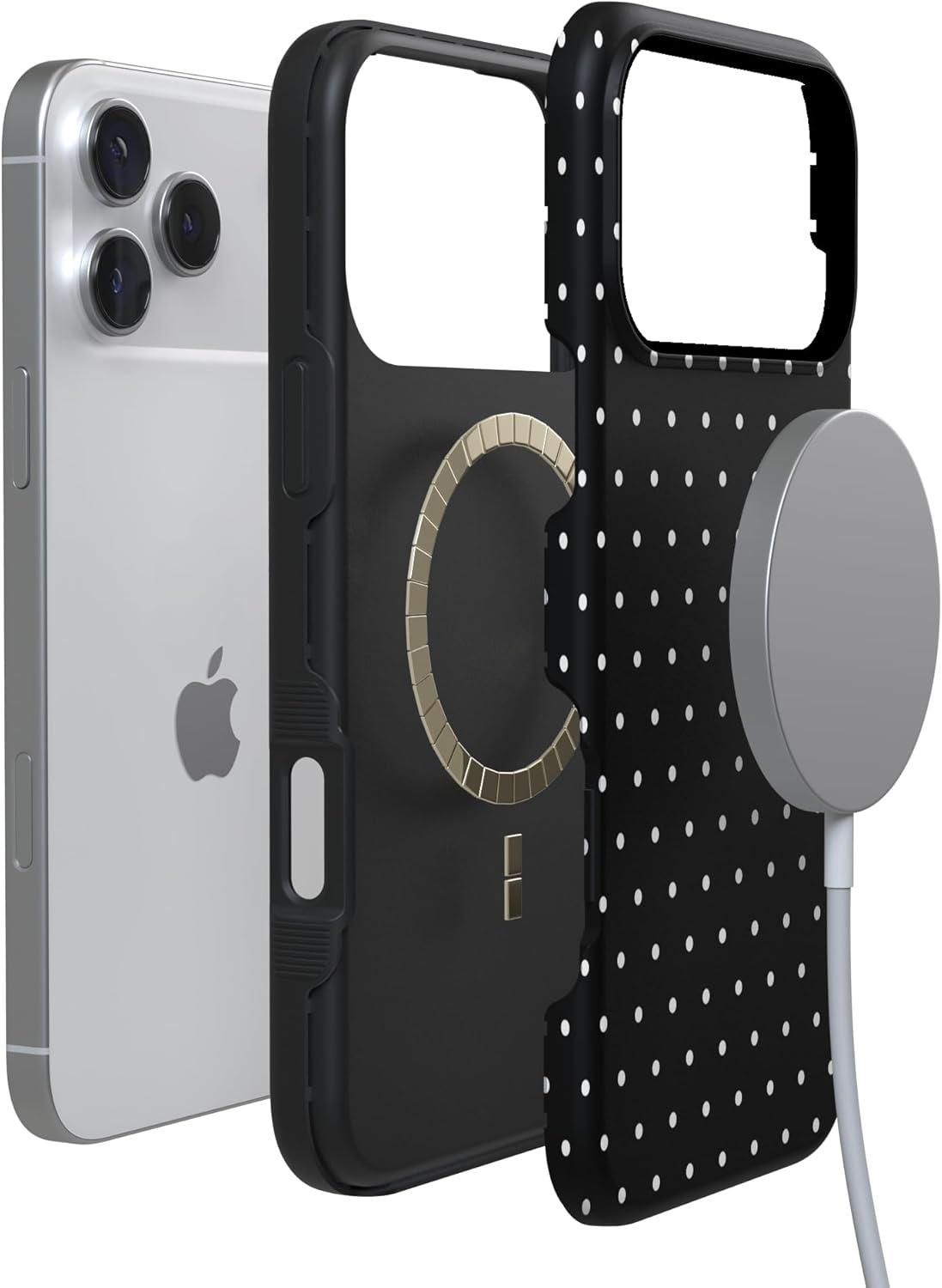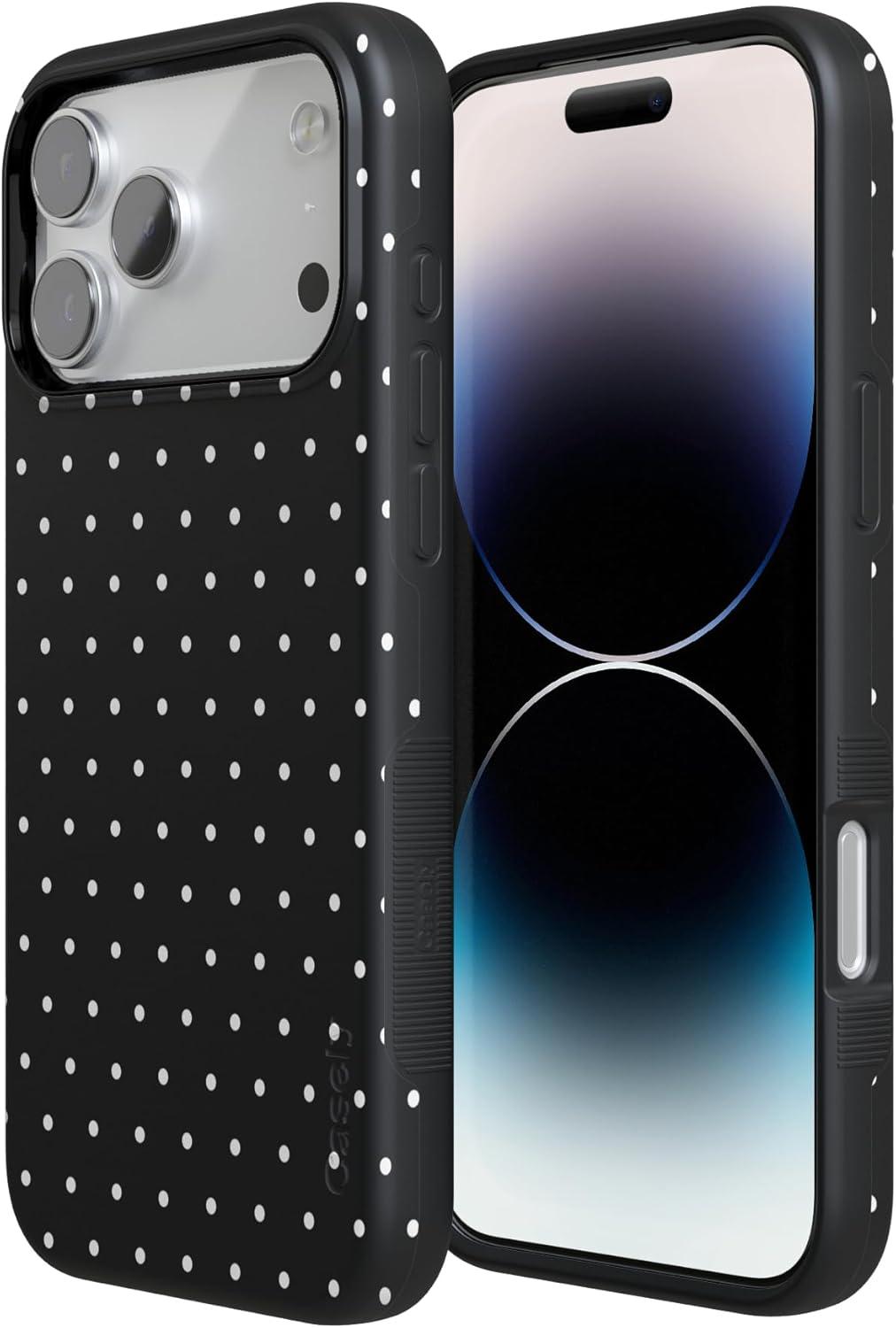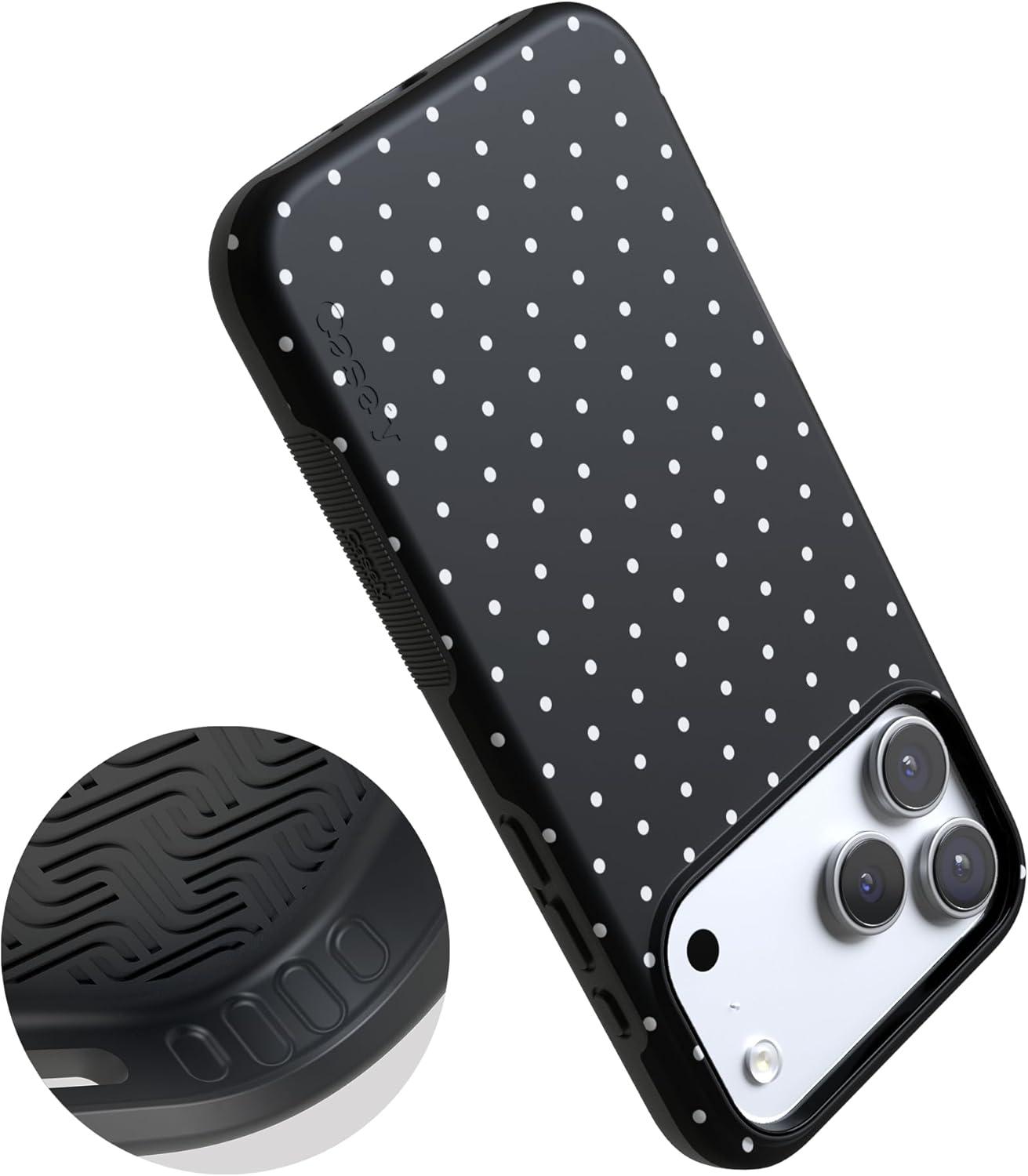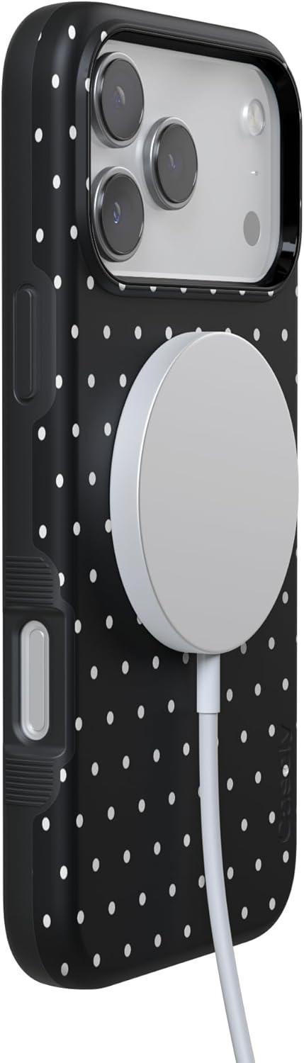 Casely iPhone 17 Pro Max Case | Bordeaux Rose | Moody Monochrome | Bold Protective Design | Compatible with MagSafe(On the Dot | Black Polka Dot)